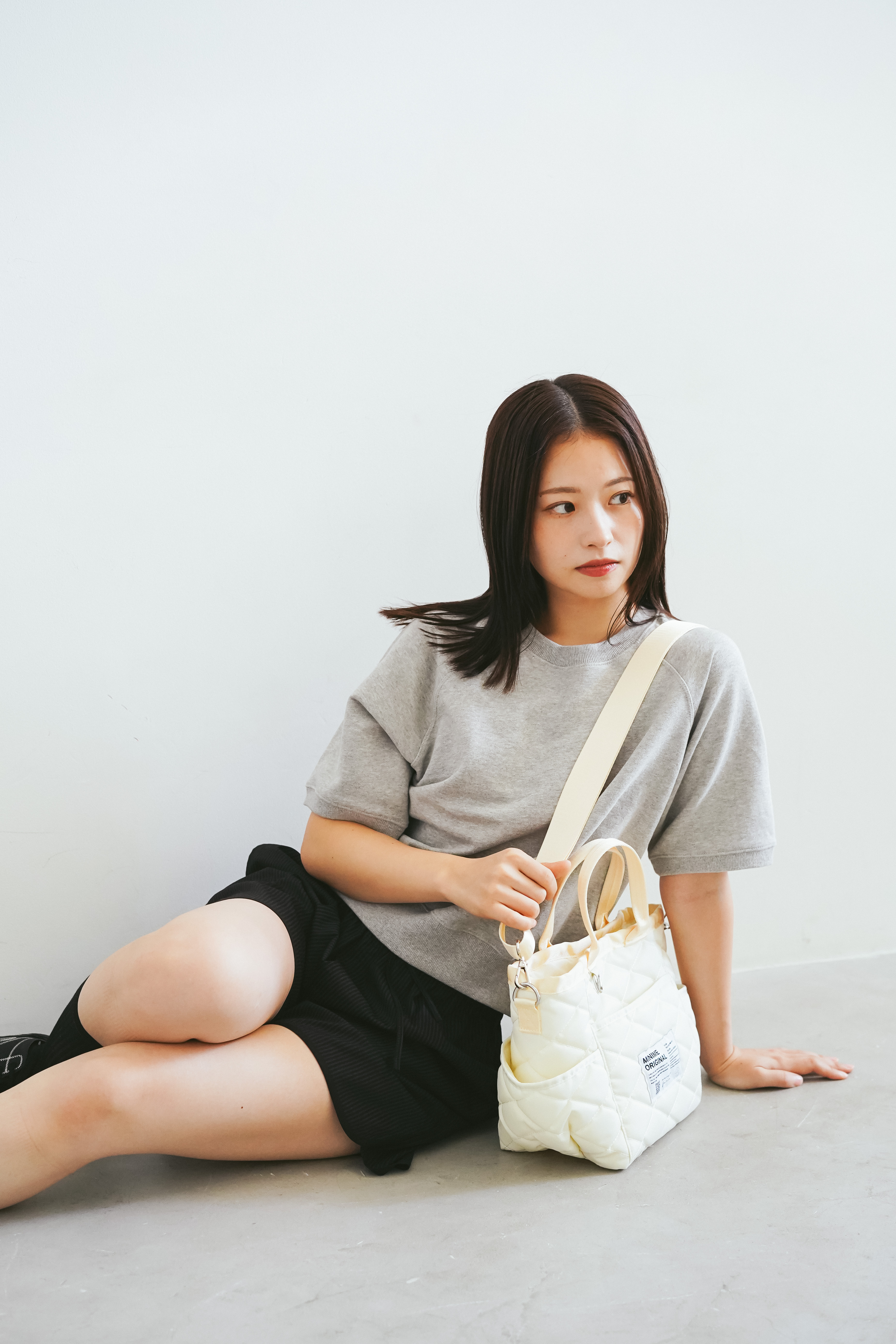 這是一款可手提也可肩背的 2WAY 外出包,附有可拆式肩背帶,可依照穿搭或情境自由變換使用方式。