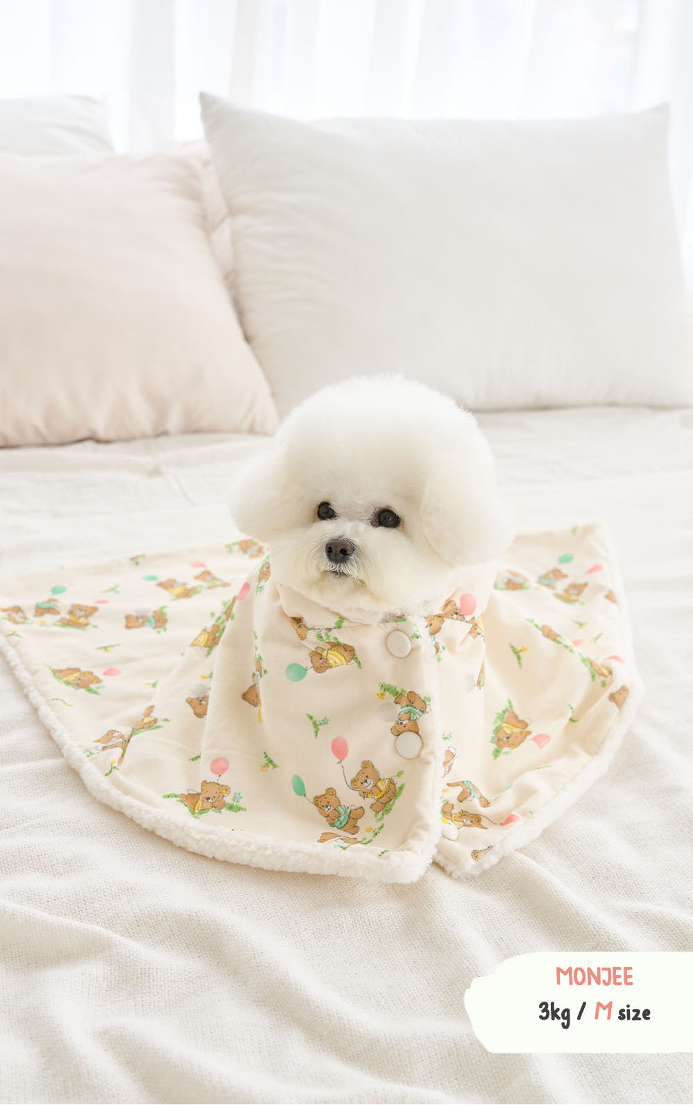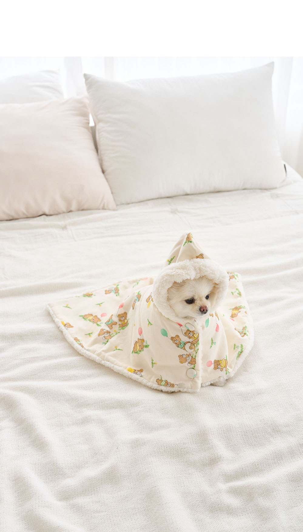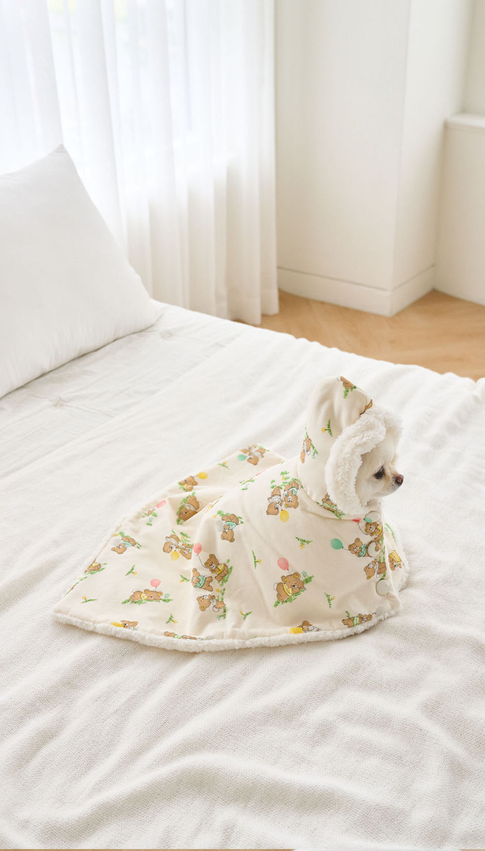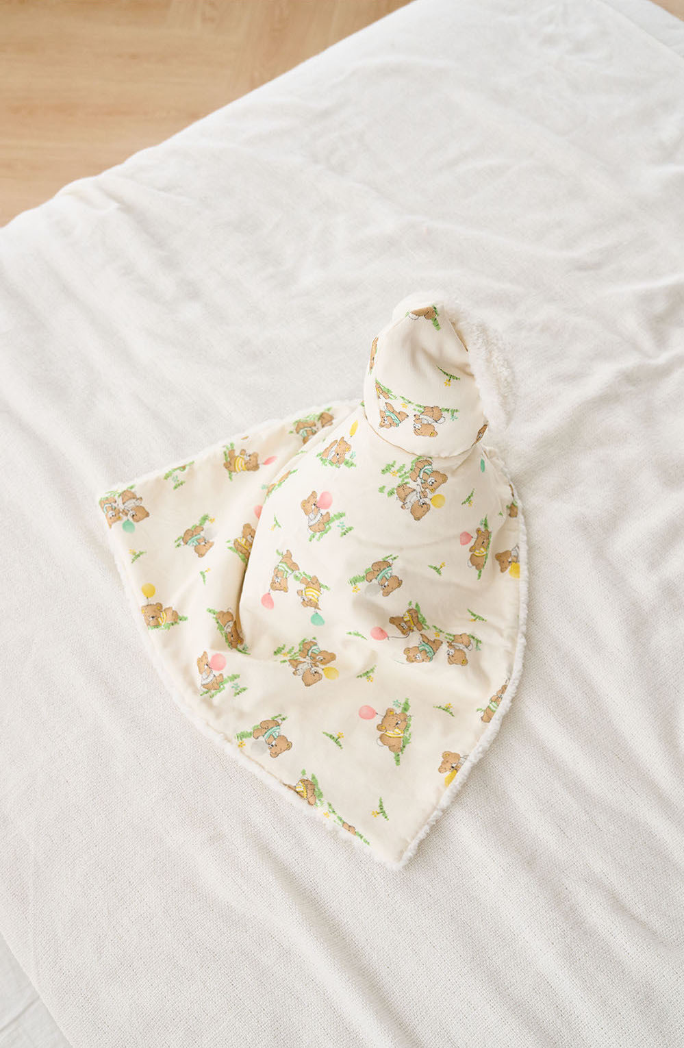 可以當作暖暖小毛毯,同時也是簡易連帽披風,熊熊可愛印花+人造軟毛雙面毯,活用度滿點。