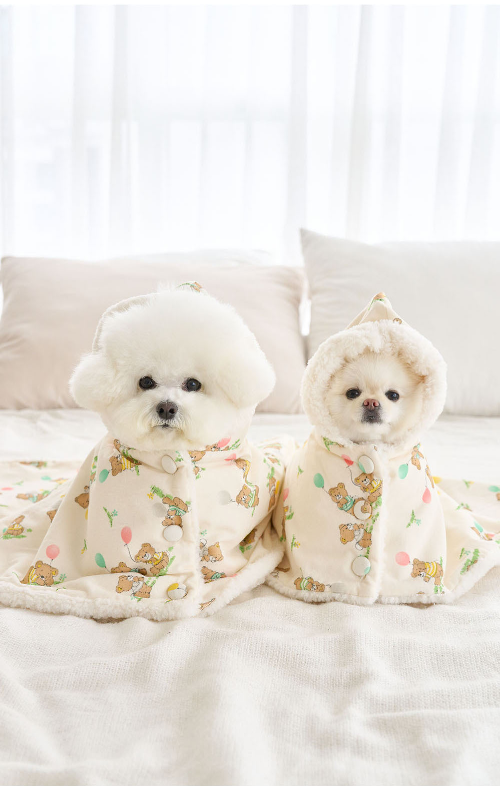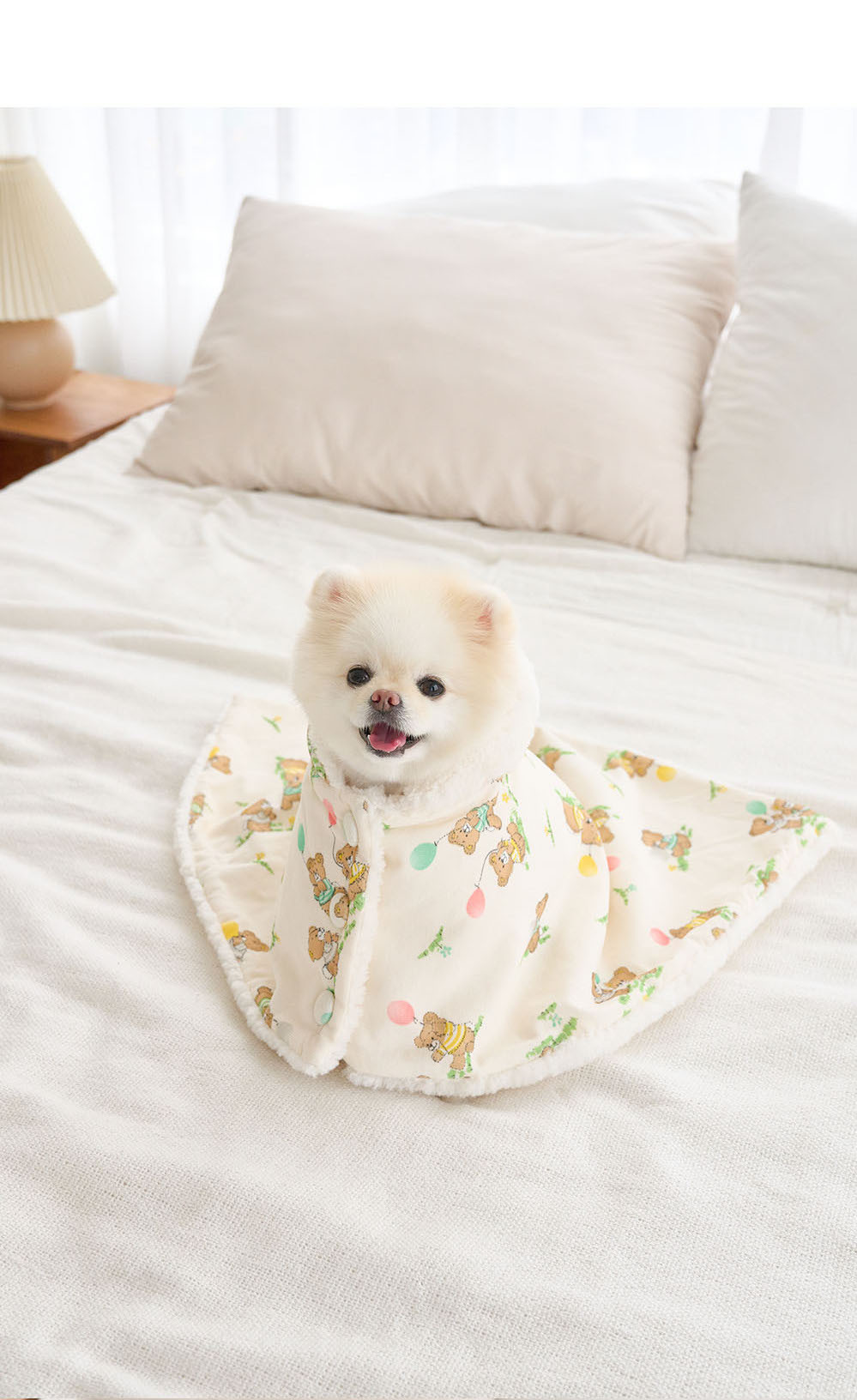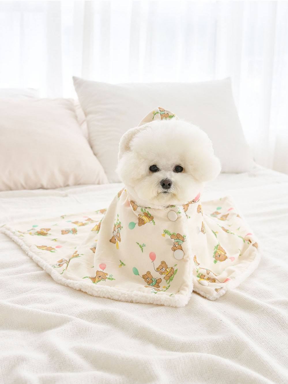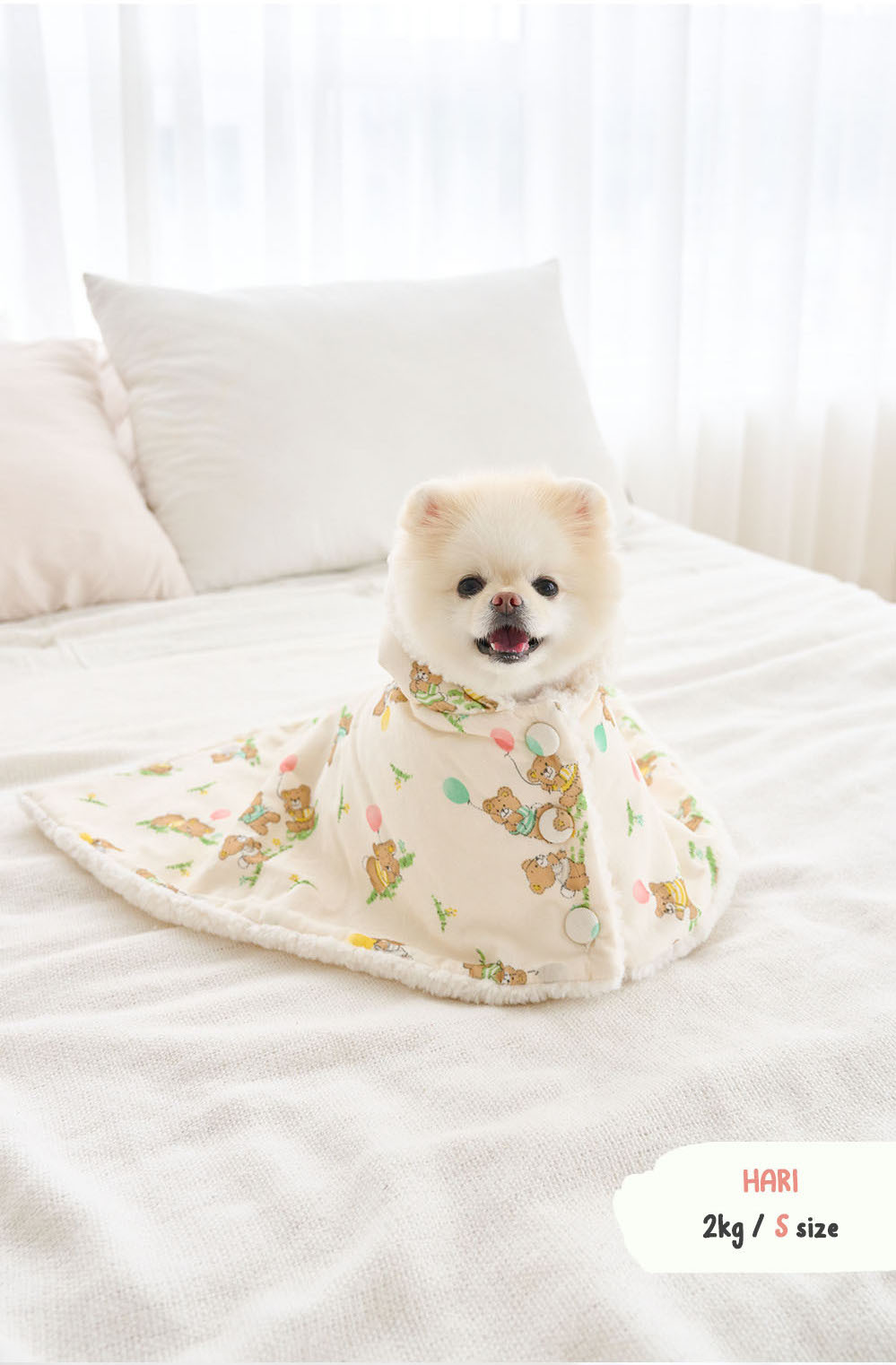 可以當作暖暖小毛毯,同時也是簡易連帽披風,熊熊可愛印花+人造軟毛雙面毯,活用度滿點。