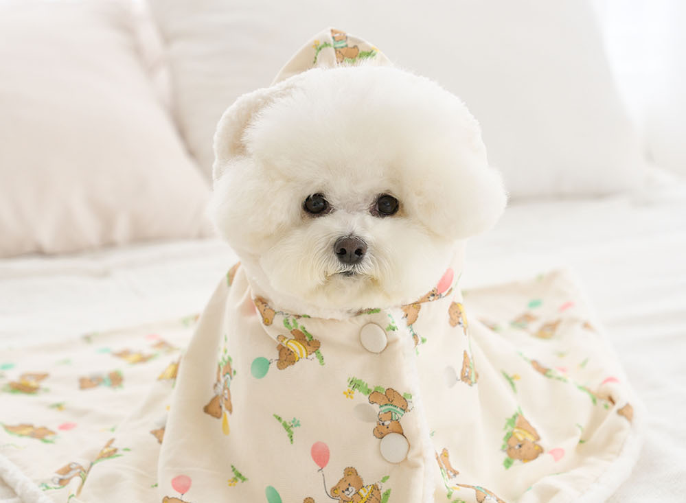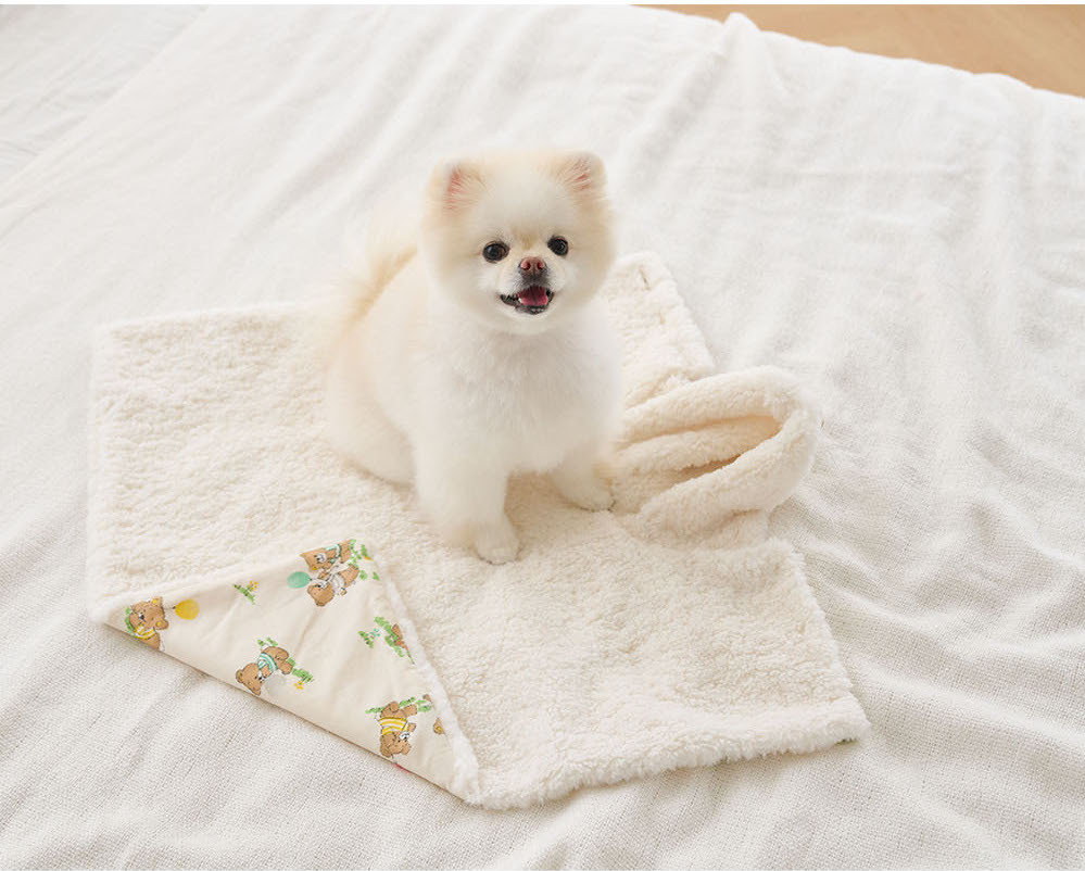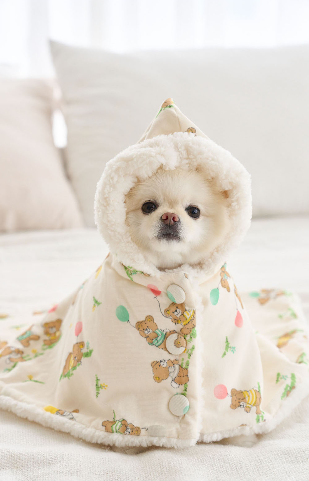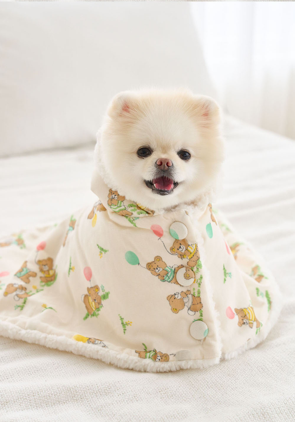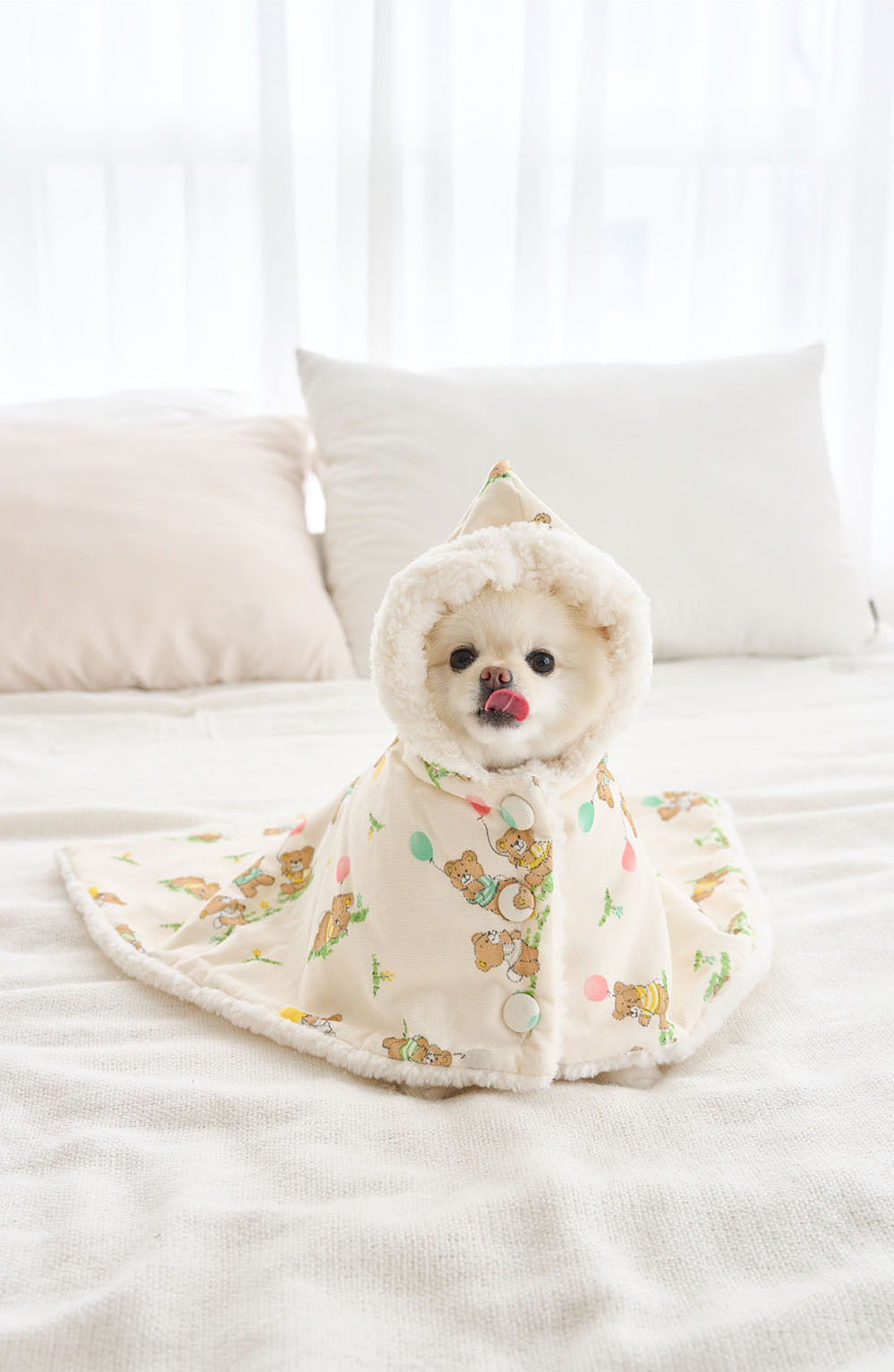 可以當作暖暖小毛毯,同時也是簡易連帽披風,熊熊可愛印花+人造軟毛雙面毯,活用度滿點。