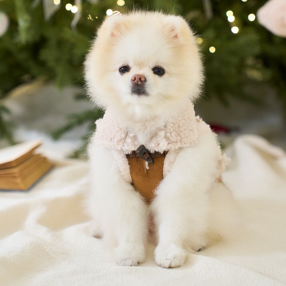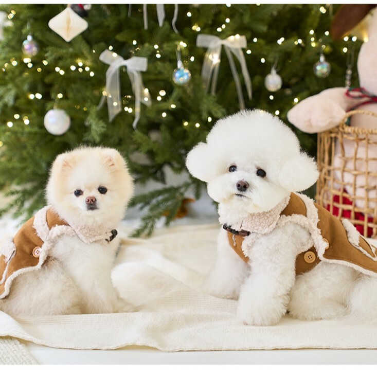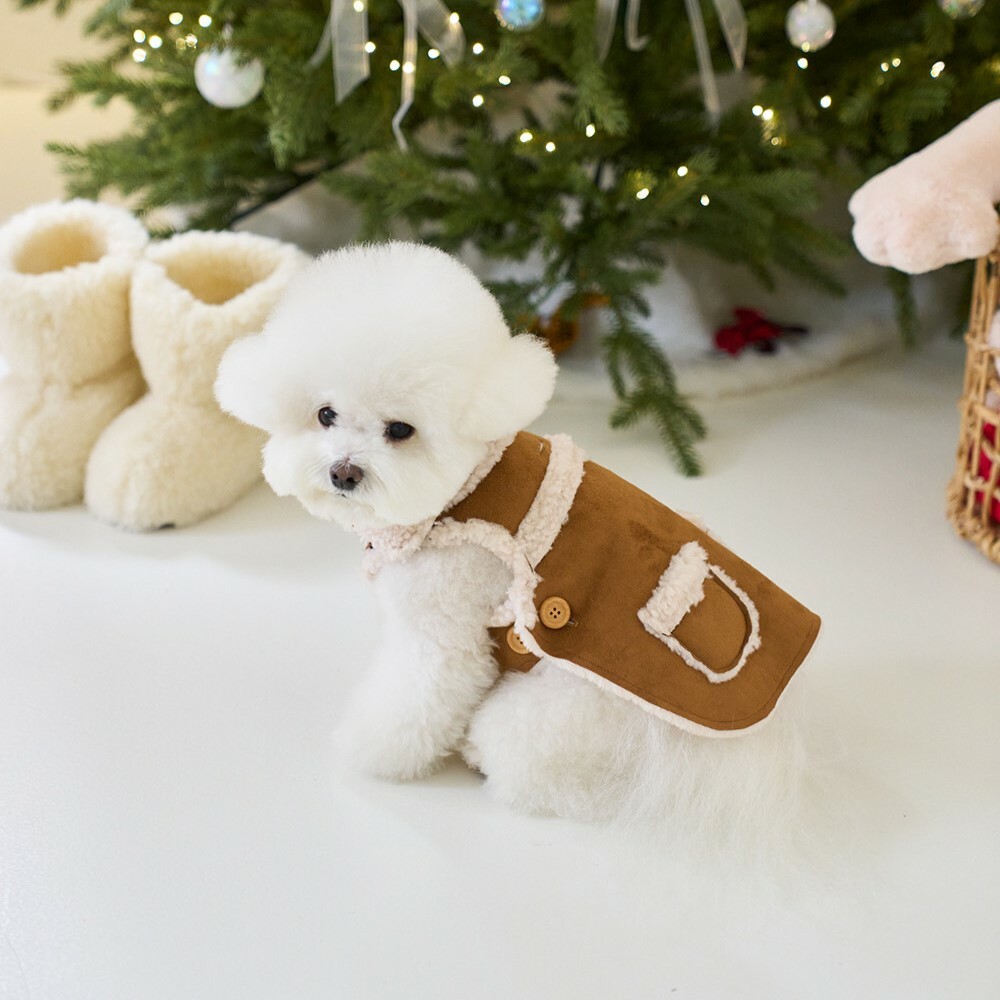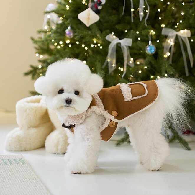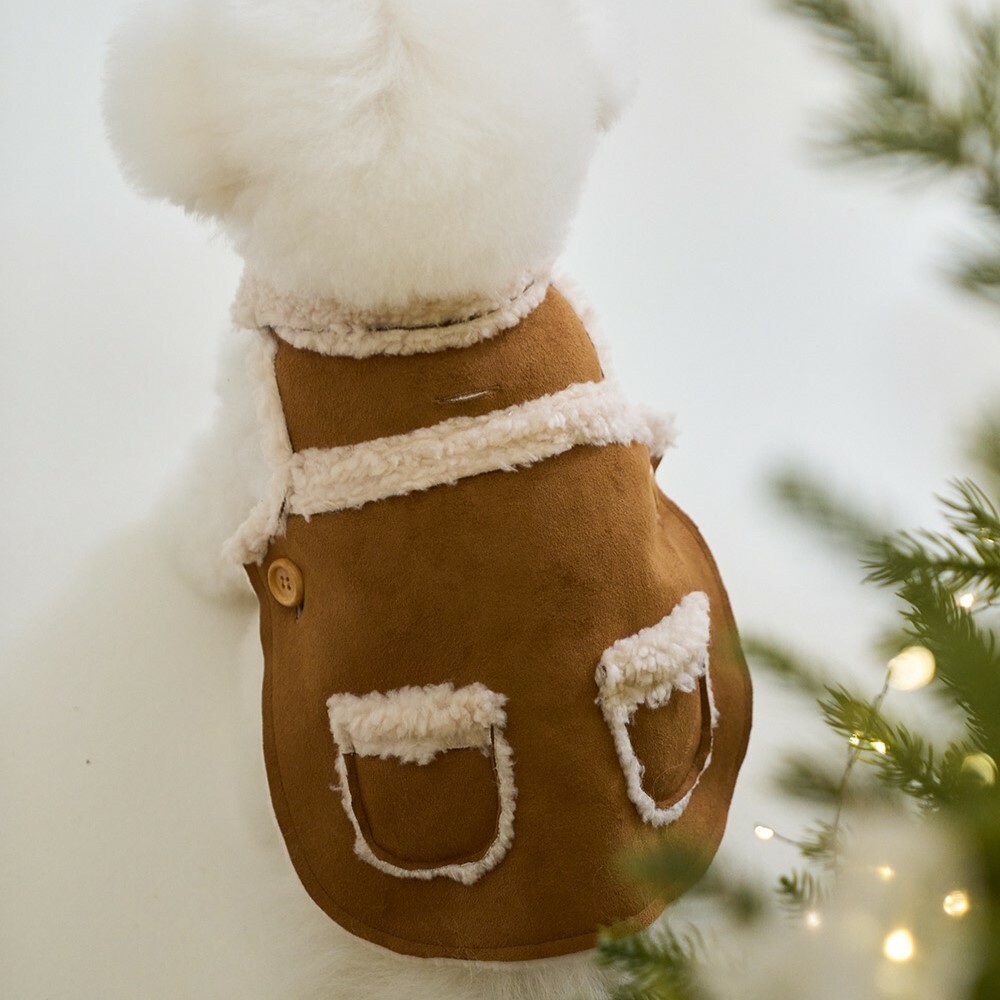 Noutti 冬季新款,以仿麂皮的環保皮製成,內部使用蓬鬆毛面料,設計類似斗篷的概念,穿戴方便,背後有開口眼細節,可以將牽繩穿在斗篷裡面,避免衣服厚,需要調整牽繩,穿起來像一隻可愛的小麋鹿、小馬一樣,可愛又保暖!