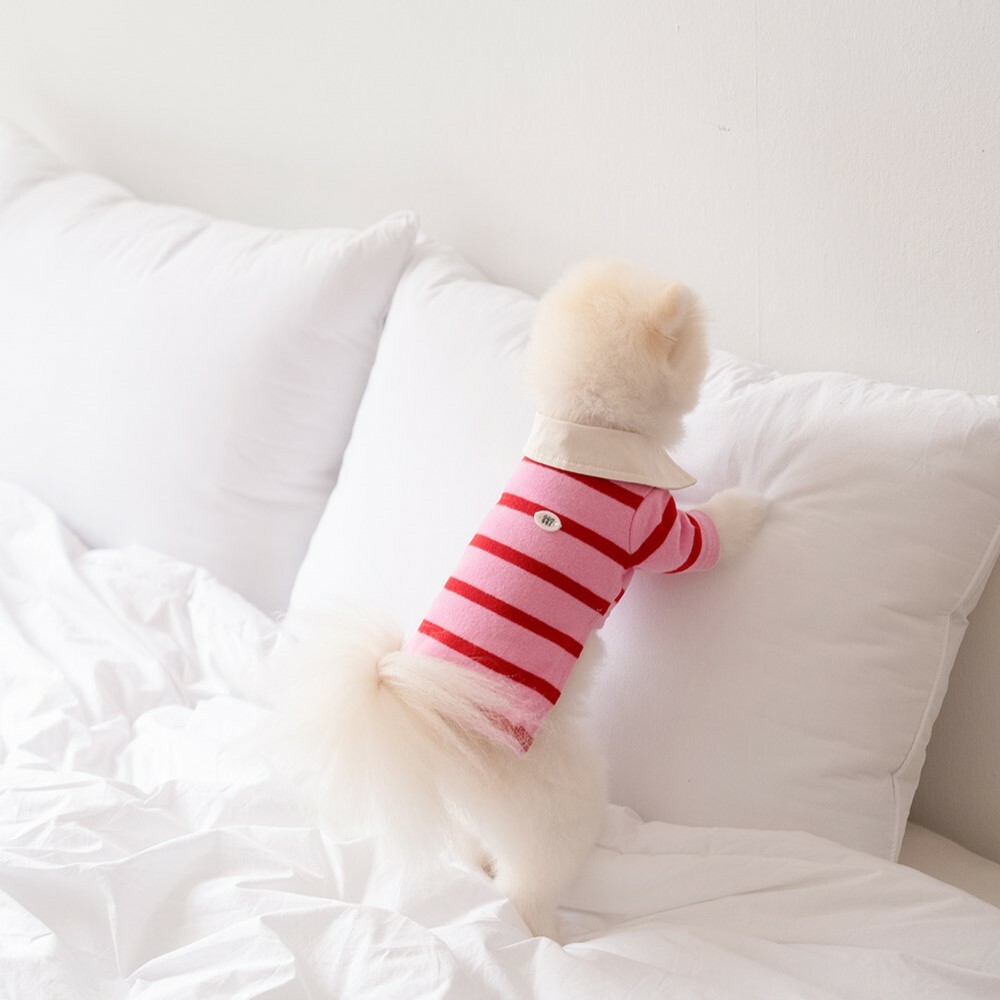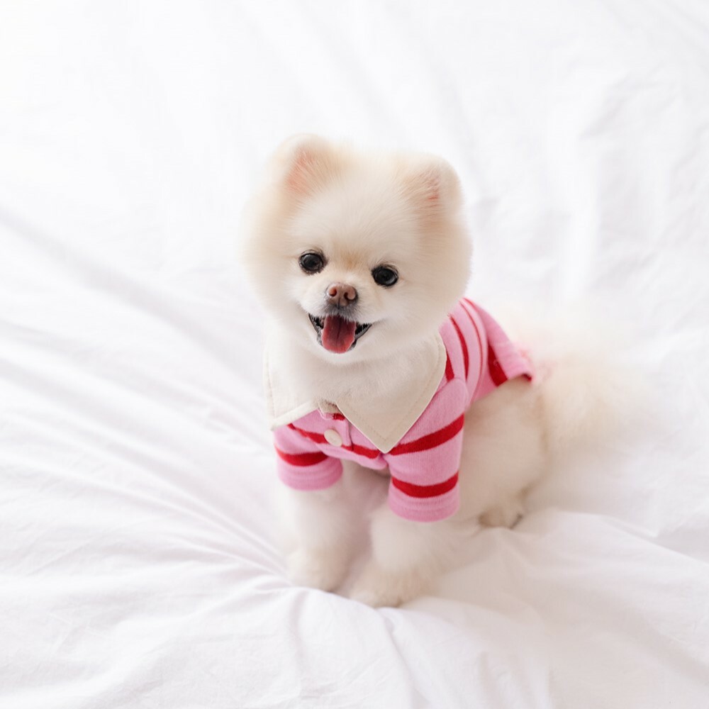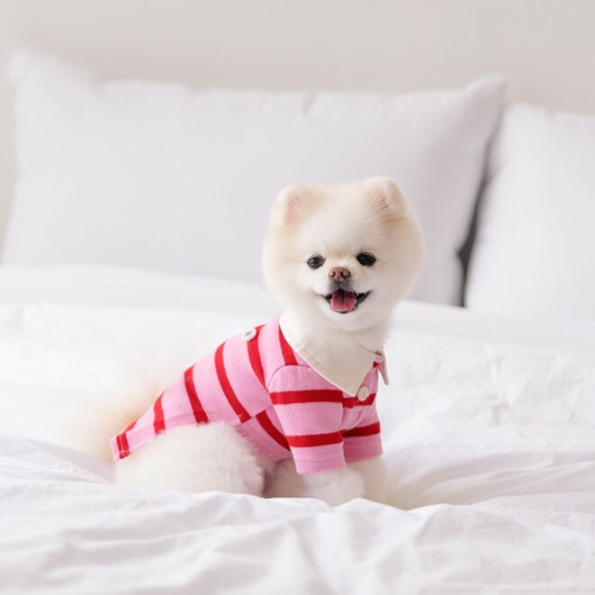 Noutti 粉紅經典梅西條紋Polo 衫