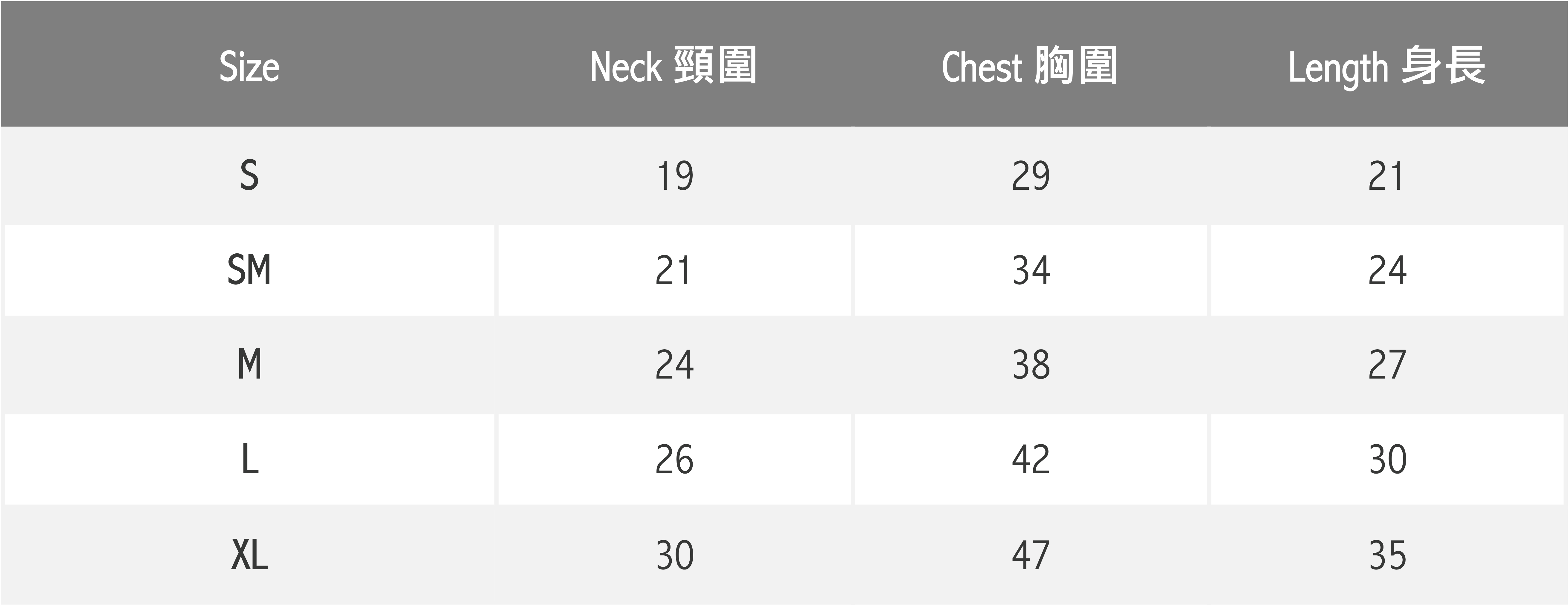 2. 尺寸選擇請以胸圍為主,衣長穿著起來的長度會因版型與狗狗身材而有不同。
