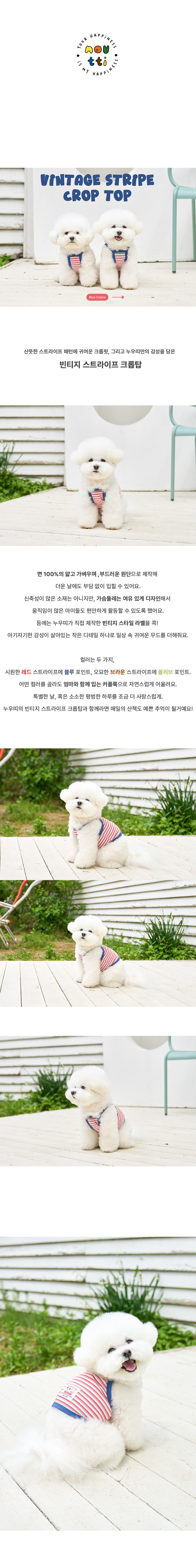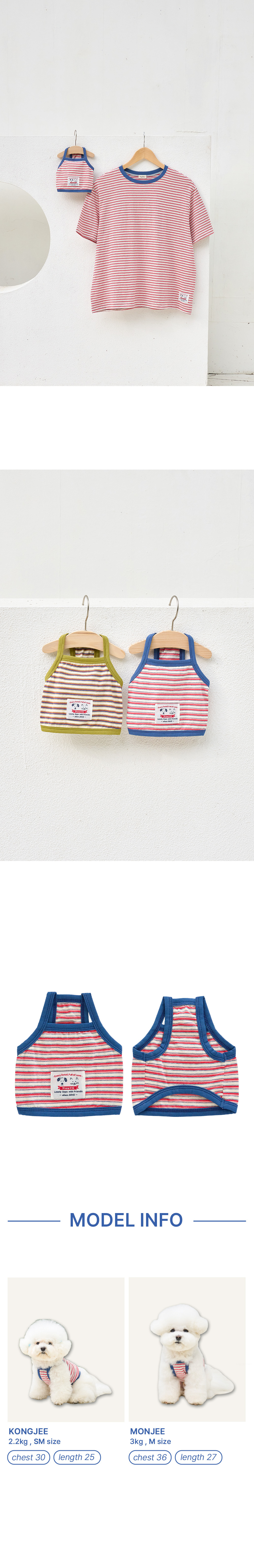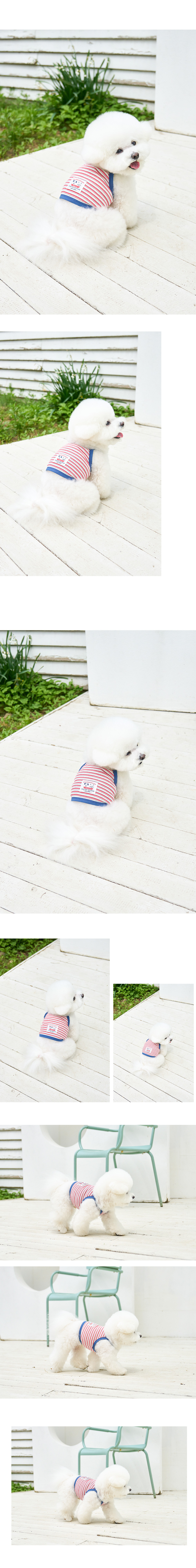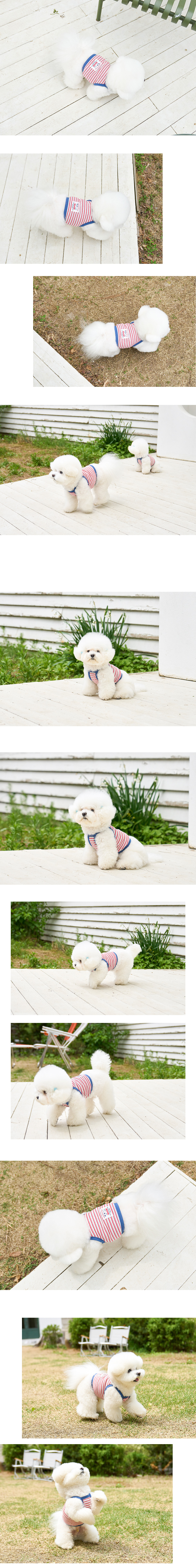 胸口留有足夠空間,穿脫方便且活動無拘束,讓好動的毛孩在奔跑或外出時都能舒適靈活。背後的復古感條紋與小巧設計細節,為日常風格增添一抹清爽與可愛。