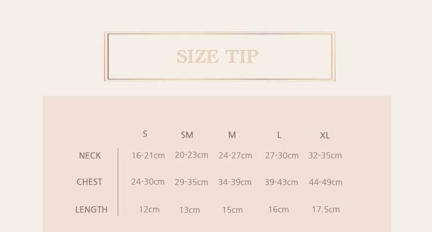 2. 尺寸選擇請以胸圍為主,衣長穿著起來的長度會因版型與狗狗身材而有不同。
