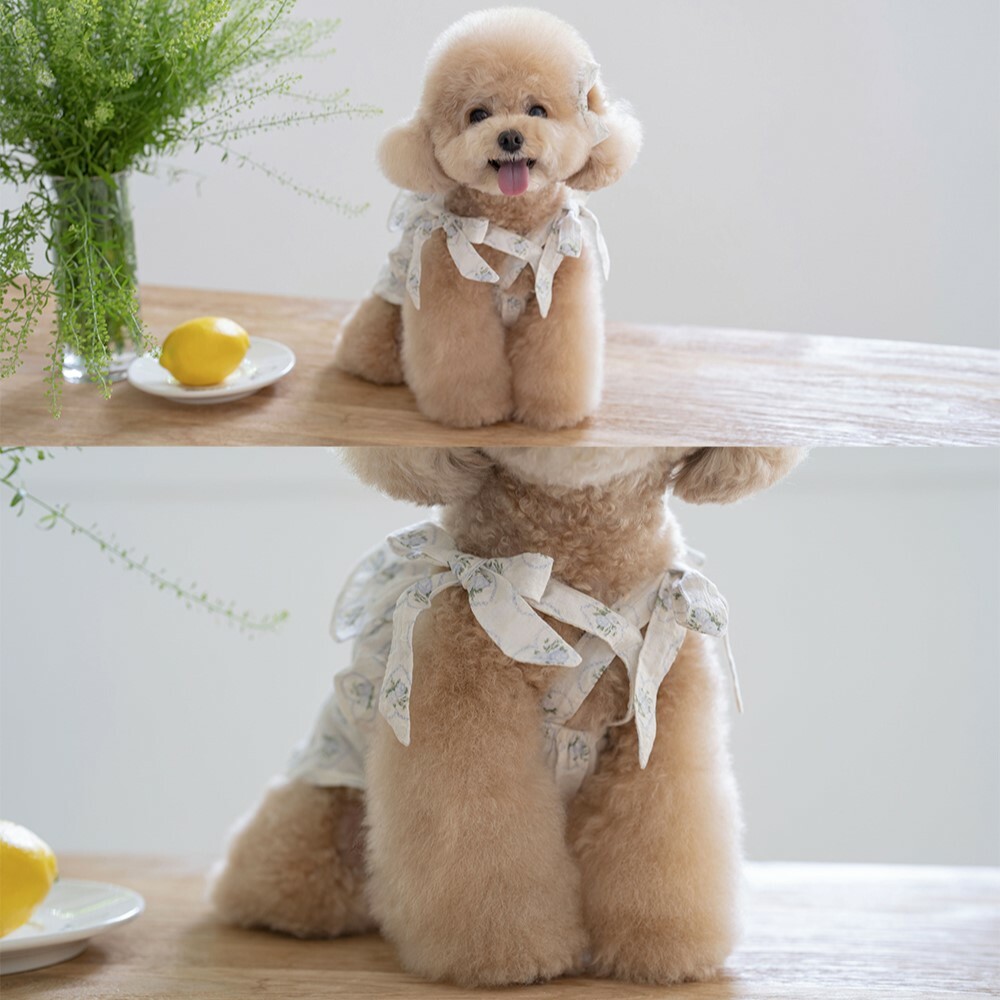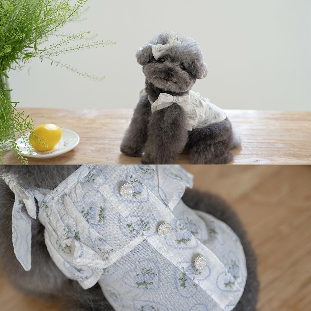 肩上的絲帶可以調節背長或頸圍,珍珠鈕扣的設計襯托出閃亮和可愛風格。