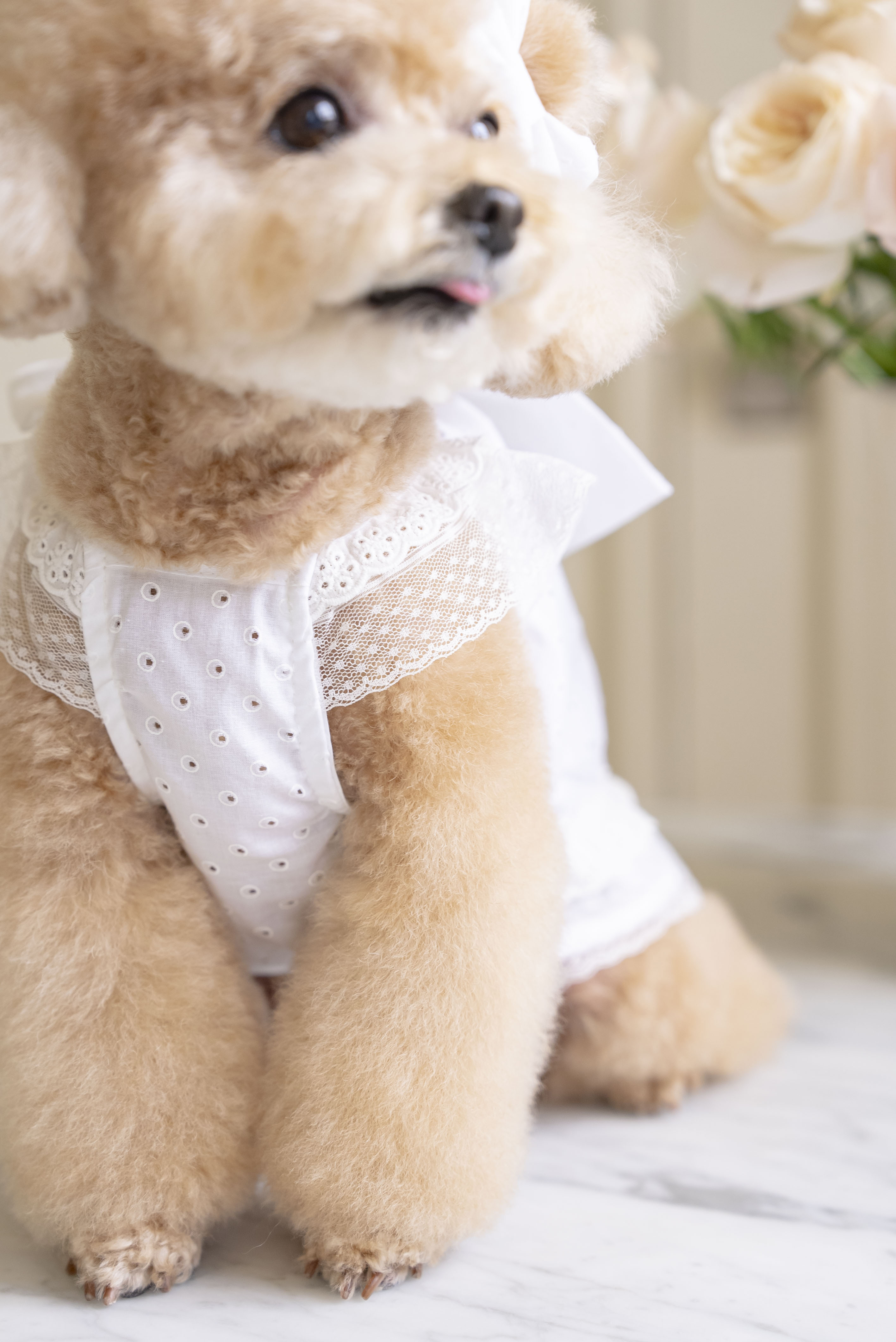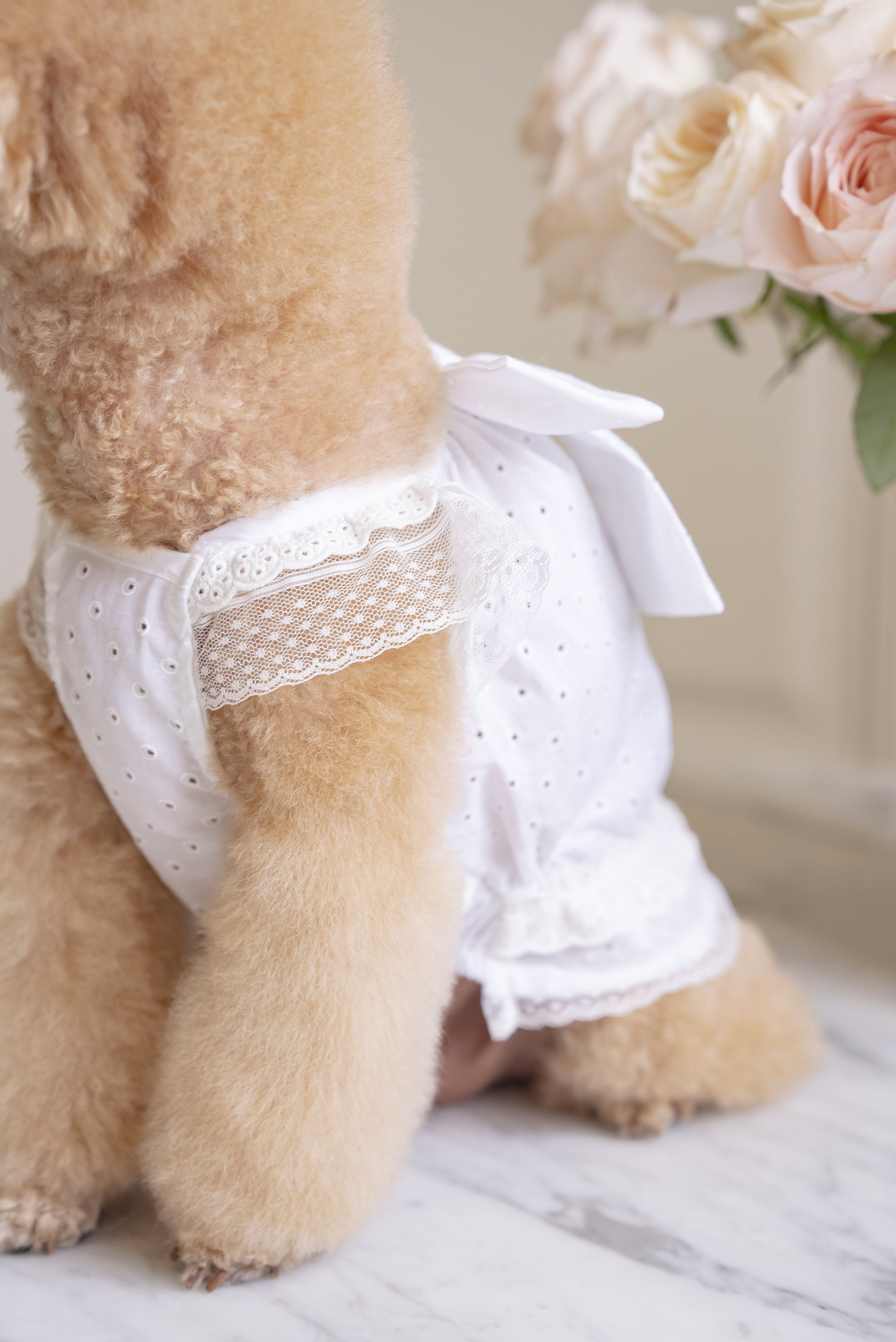 採用 100% 純棉紗製成,布料薄透柔軟,具優異的透氣性,適合悶熱夏天或皮膚較敏感的毛孩穿著。