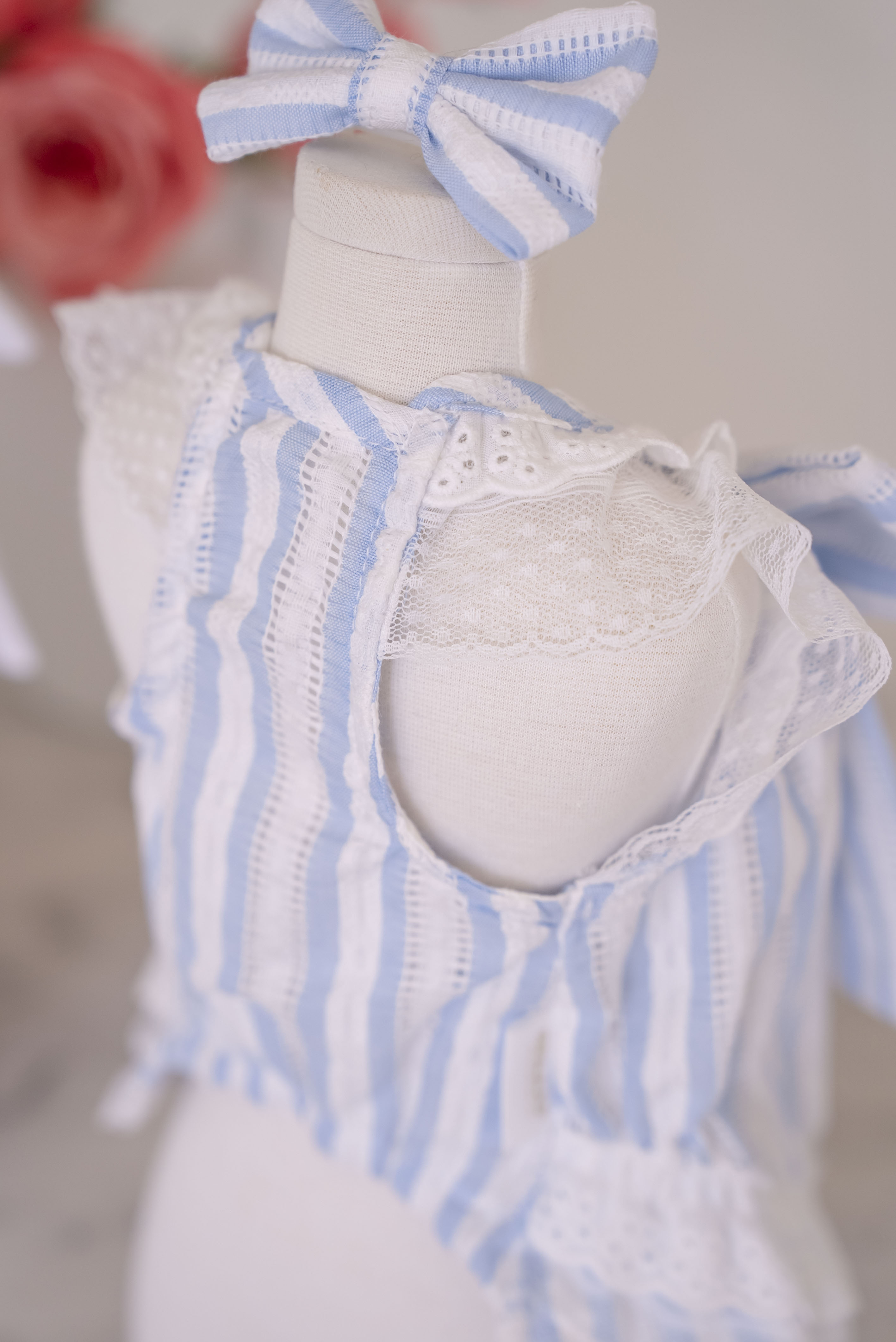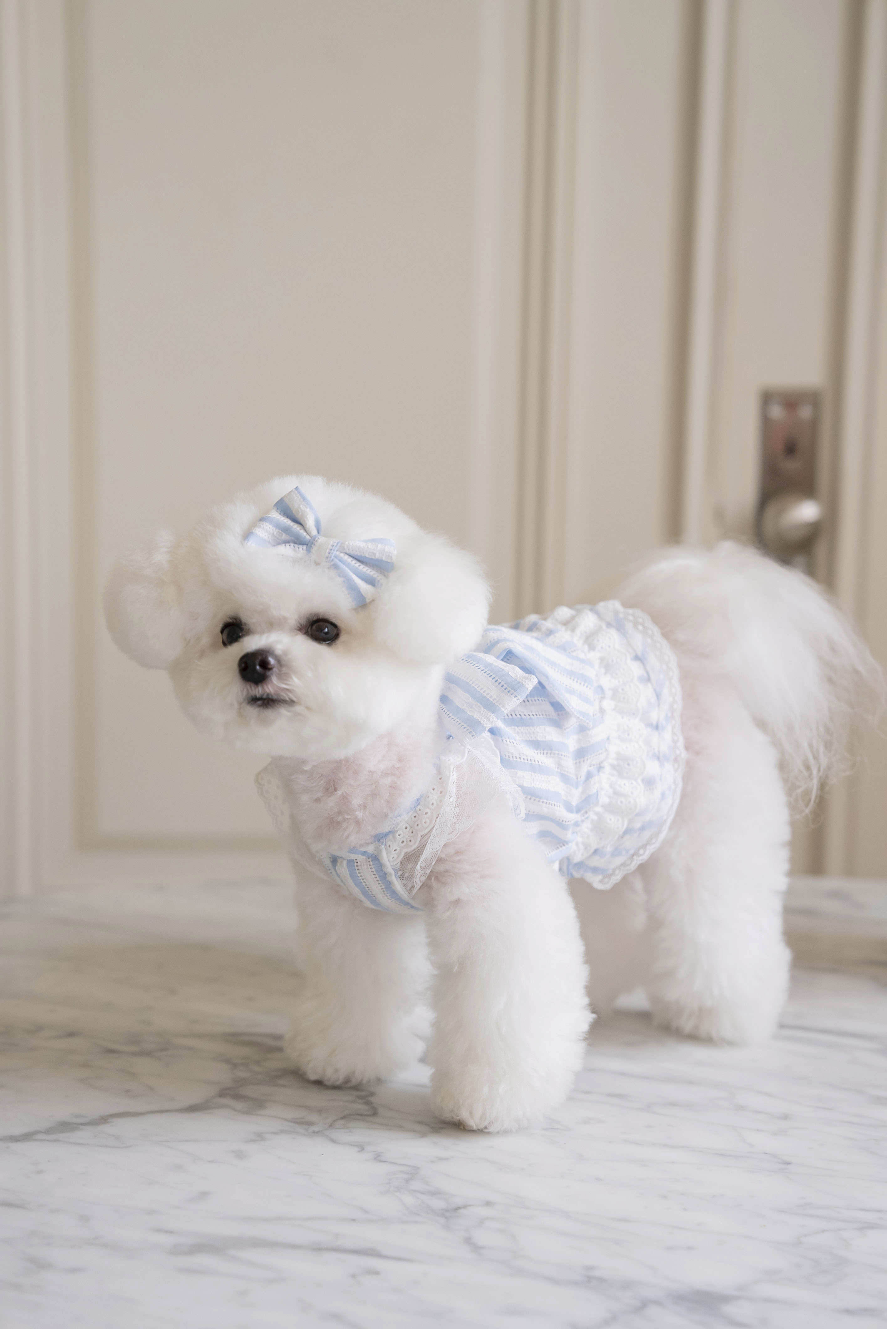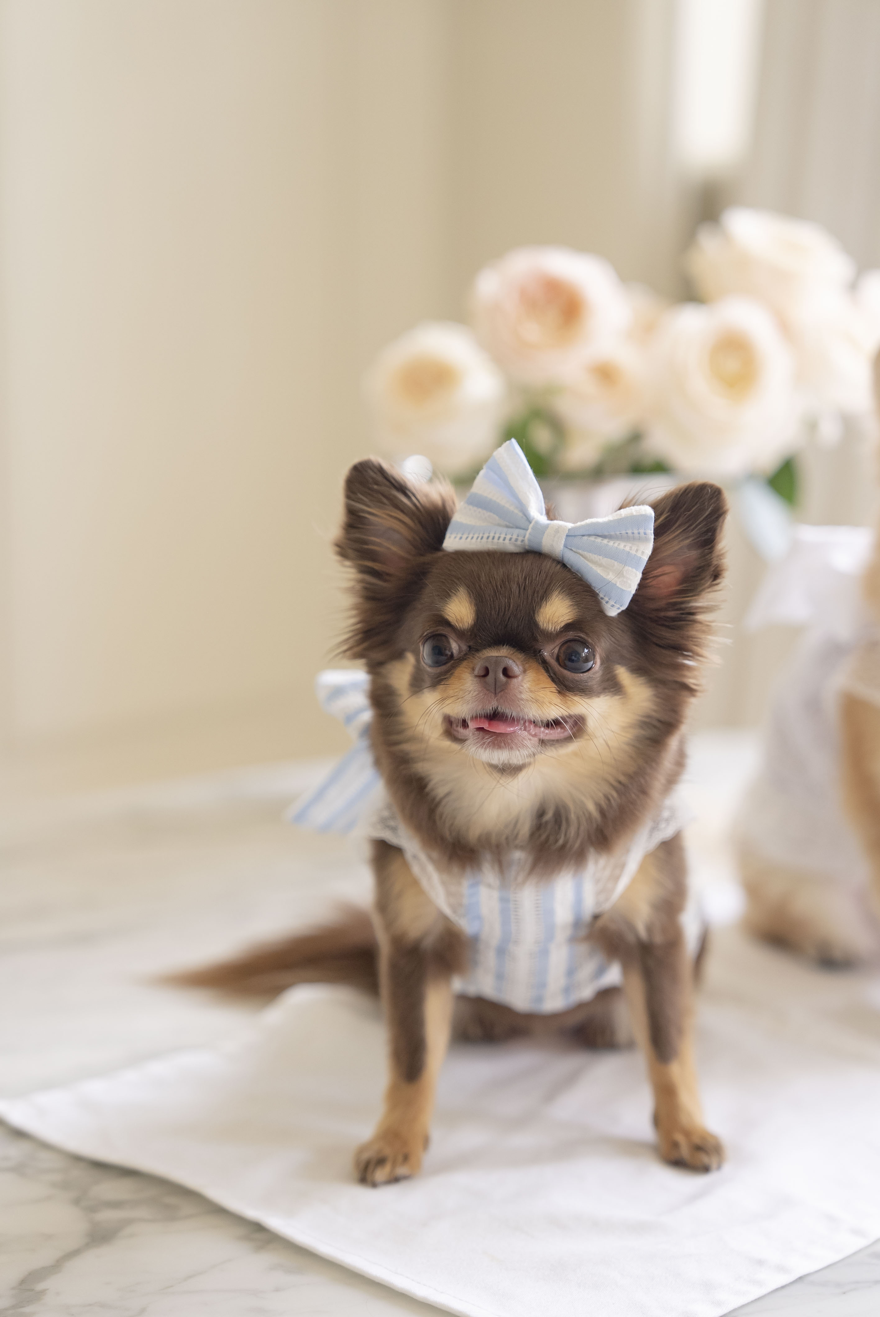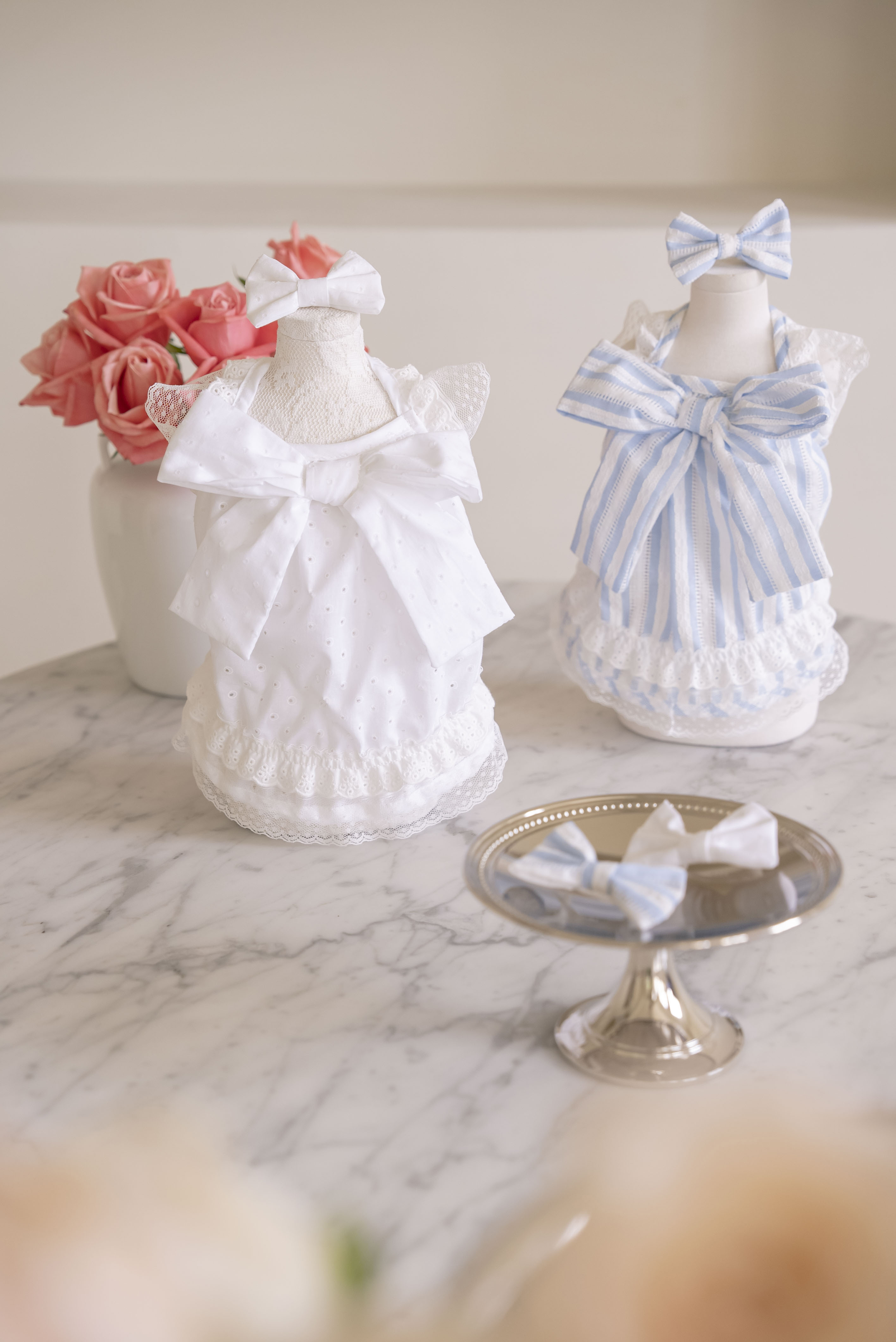 不論是白色波點還是藍色條紋,都能與 Malibu 洋裝或背帶呼應,