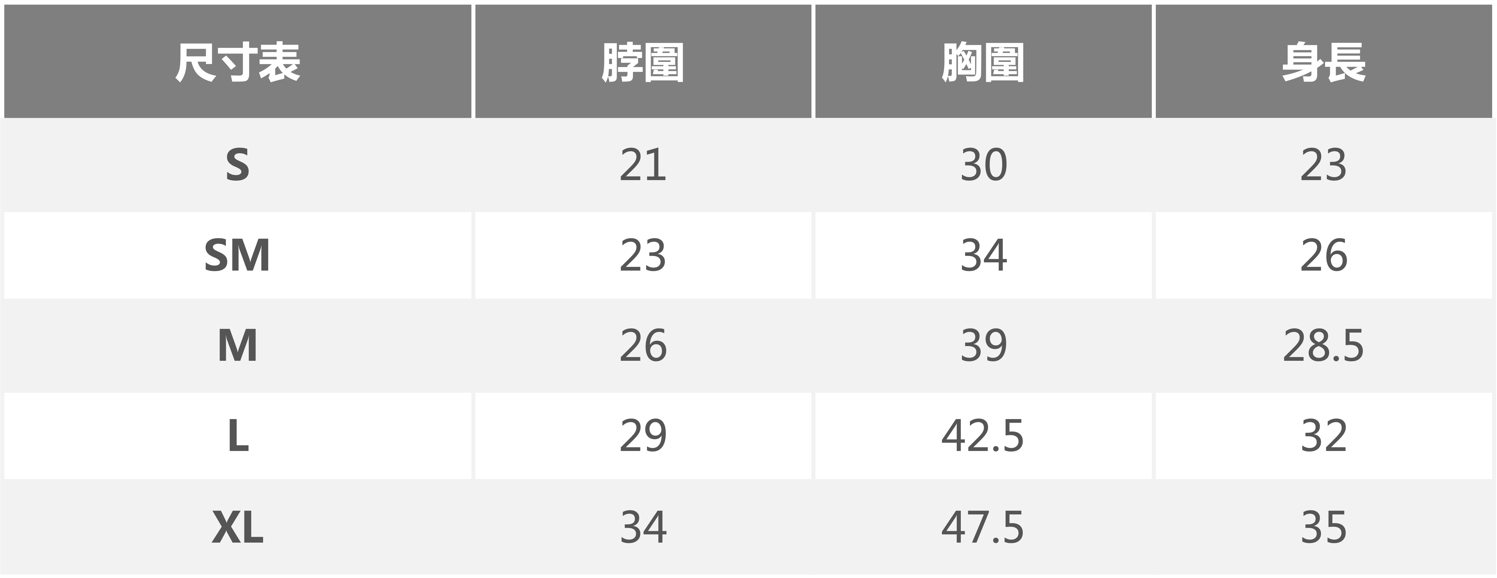 2. 尺寸選擇請以胸圍為主,衣長穿著起來的長度會因版型與狗狗身材而有不同。