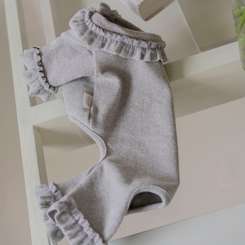 OPAAAP 2024 秋冬推出,法式的芭蕾舞裙厚棉T-shirt 灰色/燕麥新色,蕾絲的裝飾,實穿保暖的絕佳選擇!