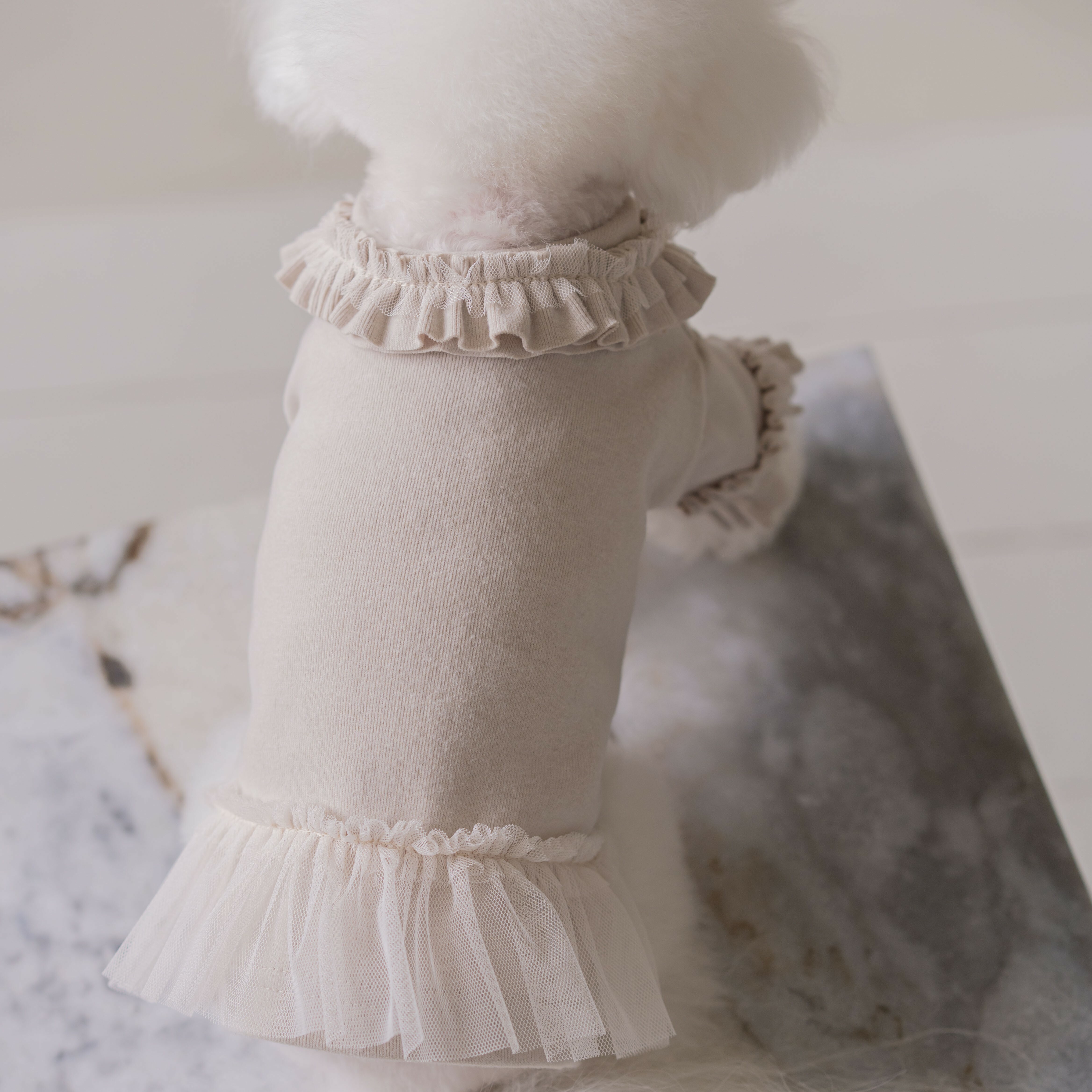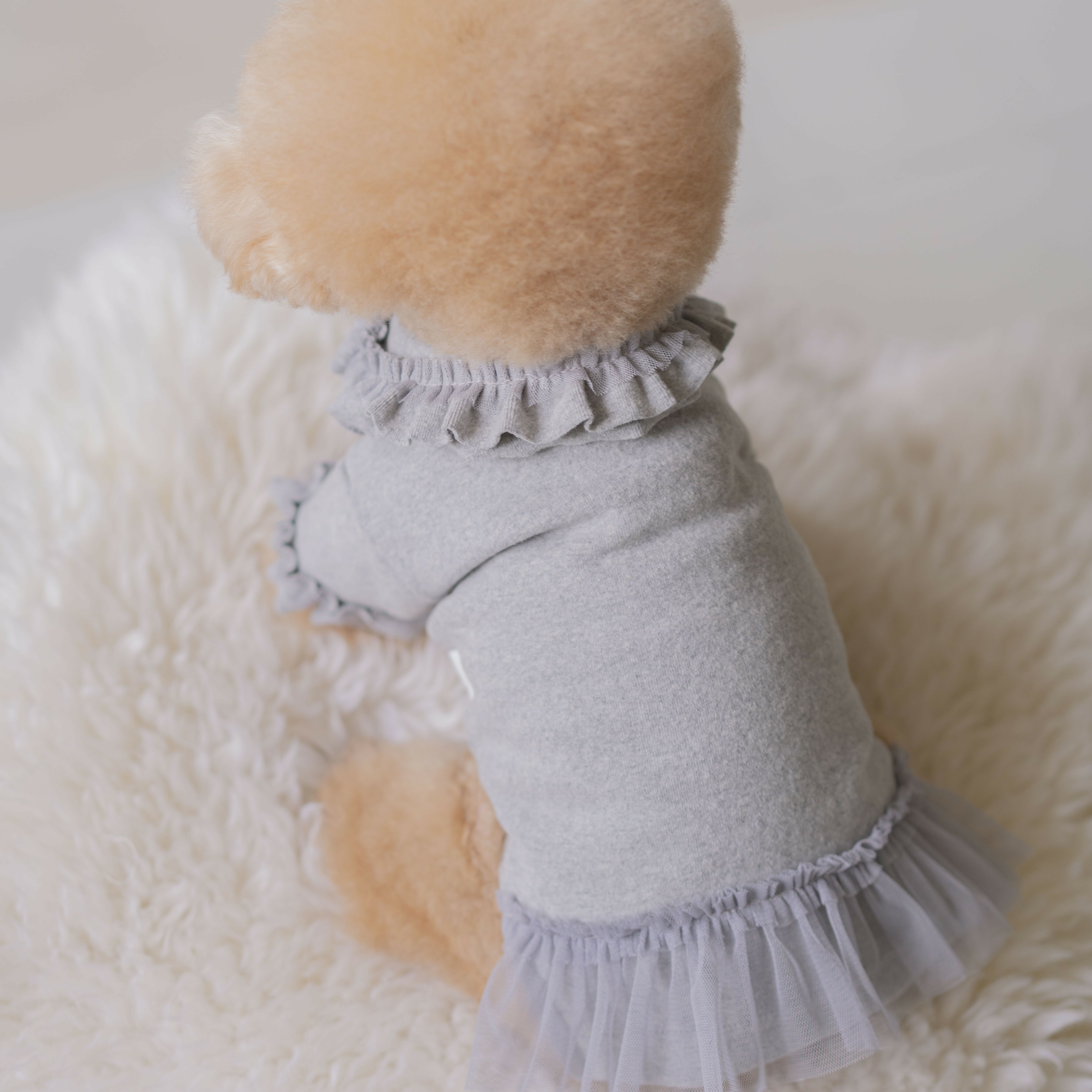 OPAAAP 2024 秋冬推出,法式的芭蕾舞裙厚棉T-shirt 灰色/燕麥新色,蕾絲的裝飾,實穿保暖的絕佳選擇!