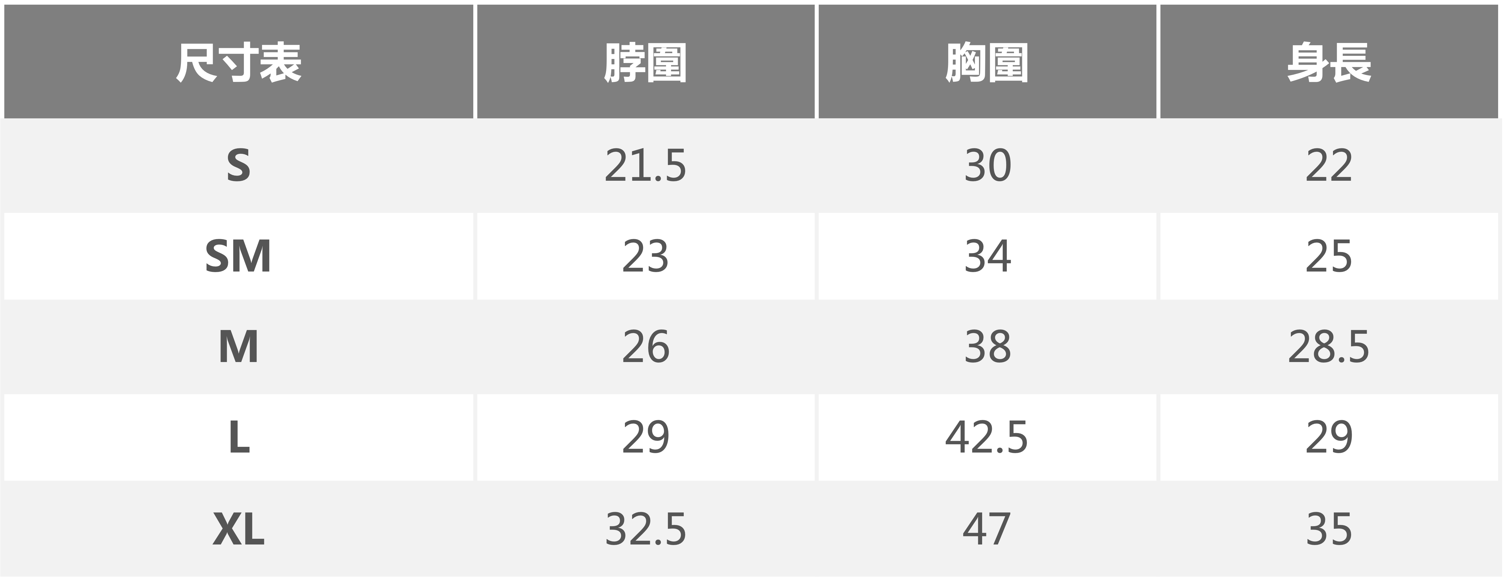 2. 尺寸選擇請以胸圍為主,衣長穿著起來的長度會因版型與狗狗身材而有不同。