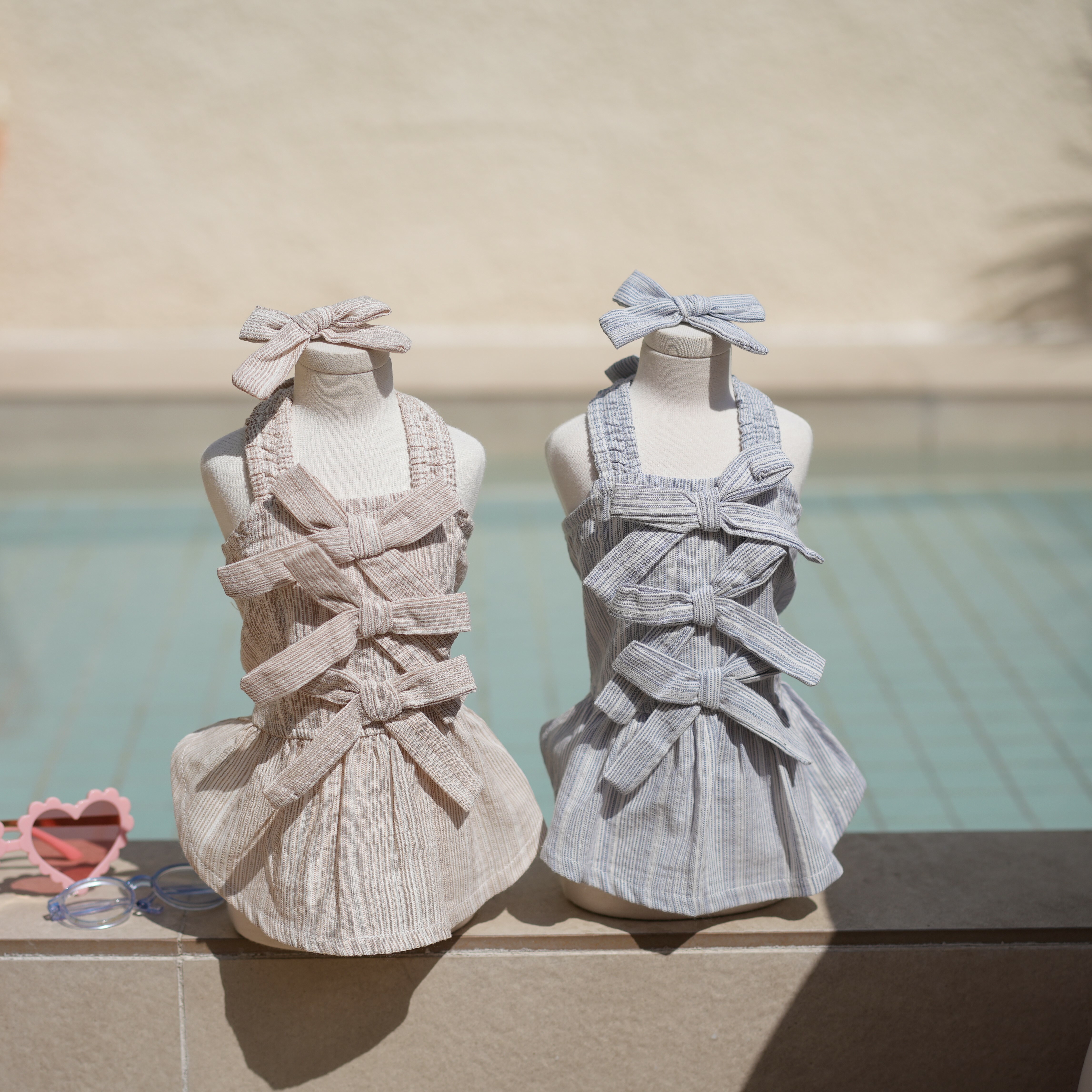 背面立體剪裁,貼合度很好,手工製作的蝴蝶結增添了可愛的氛圍,在即將到來的暑期,和寶貝們一起穿上創造美好的回憶吧!