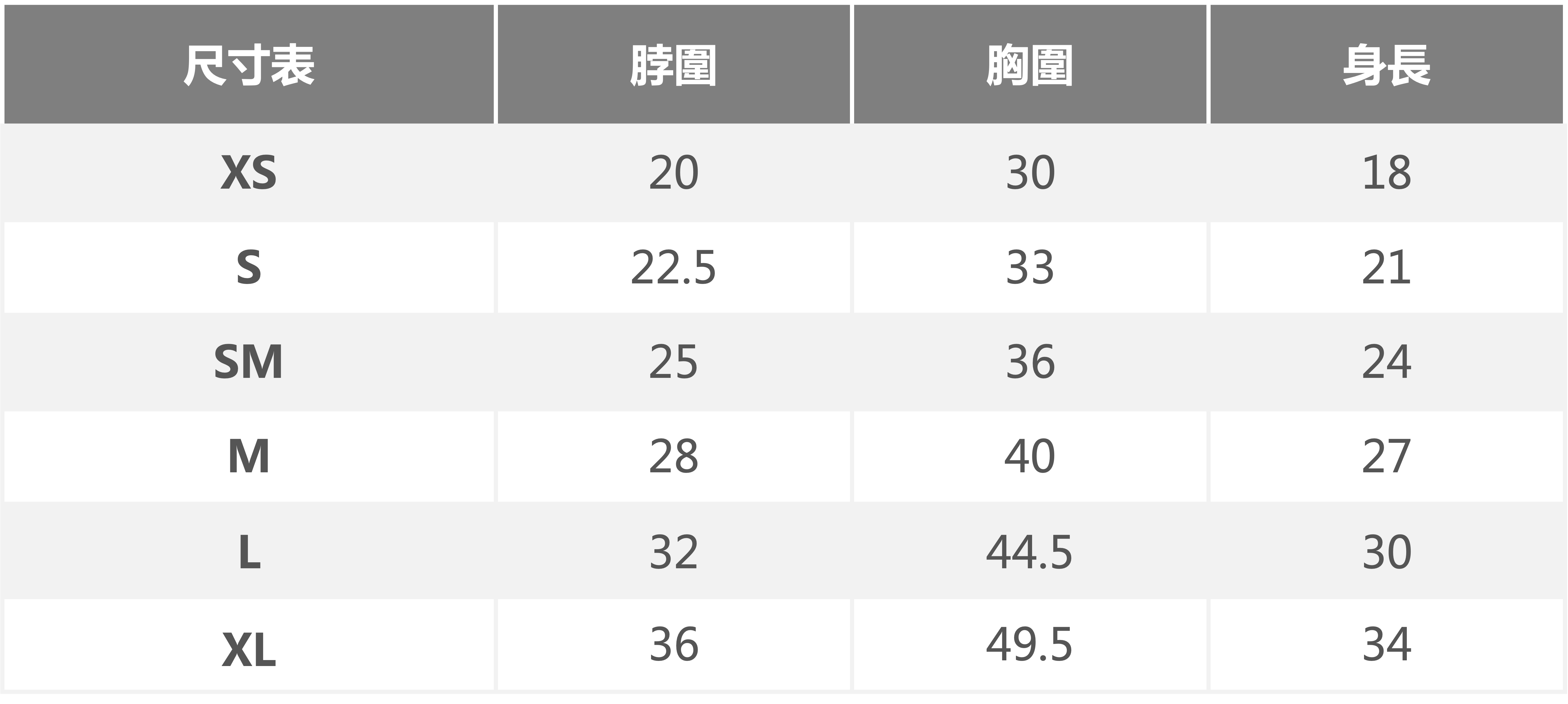 2. 尺寸選擇請以胸圍為主,衣長穿著起來的長度會因版型與狗狗身材而有不同。