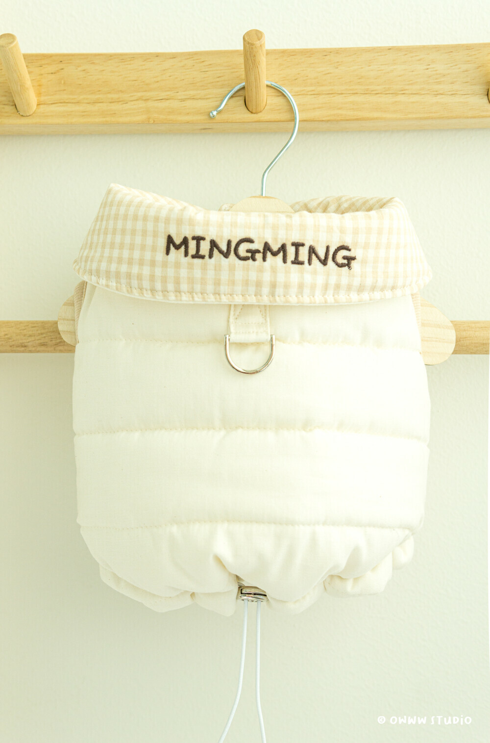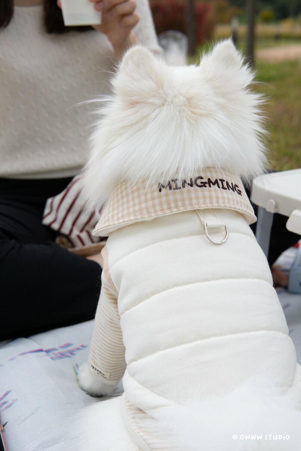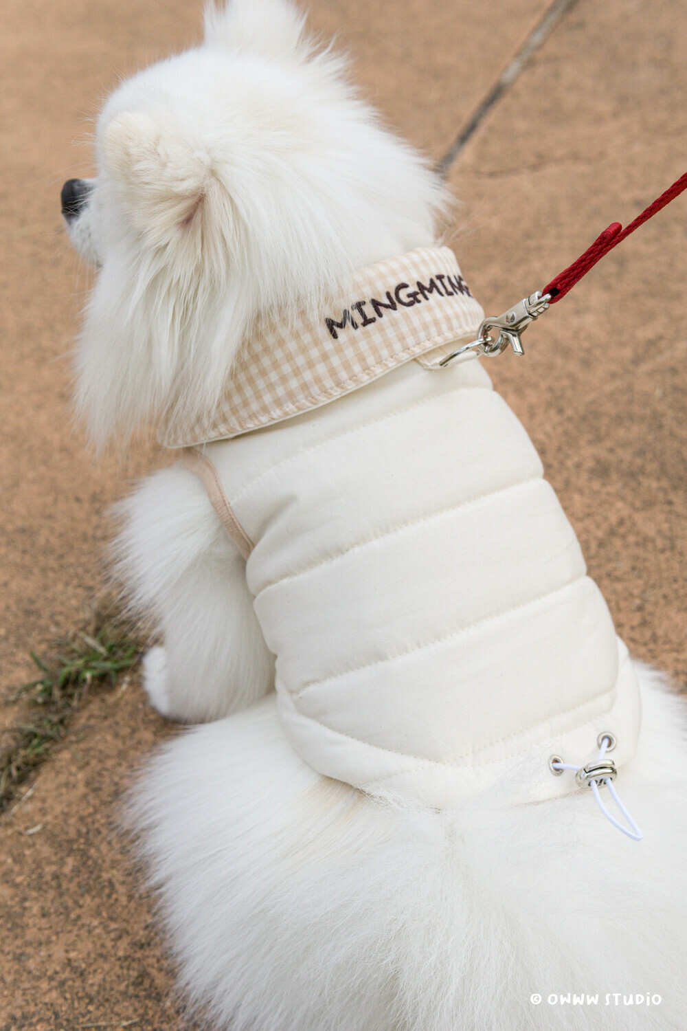 背拉扣設計可以直接扣上牽繩,方便的胸背衣款