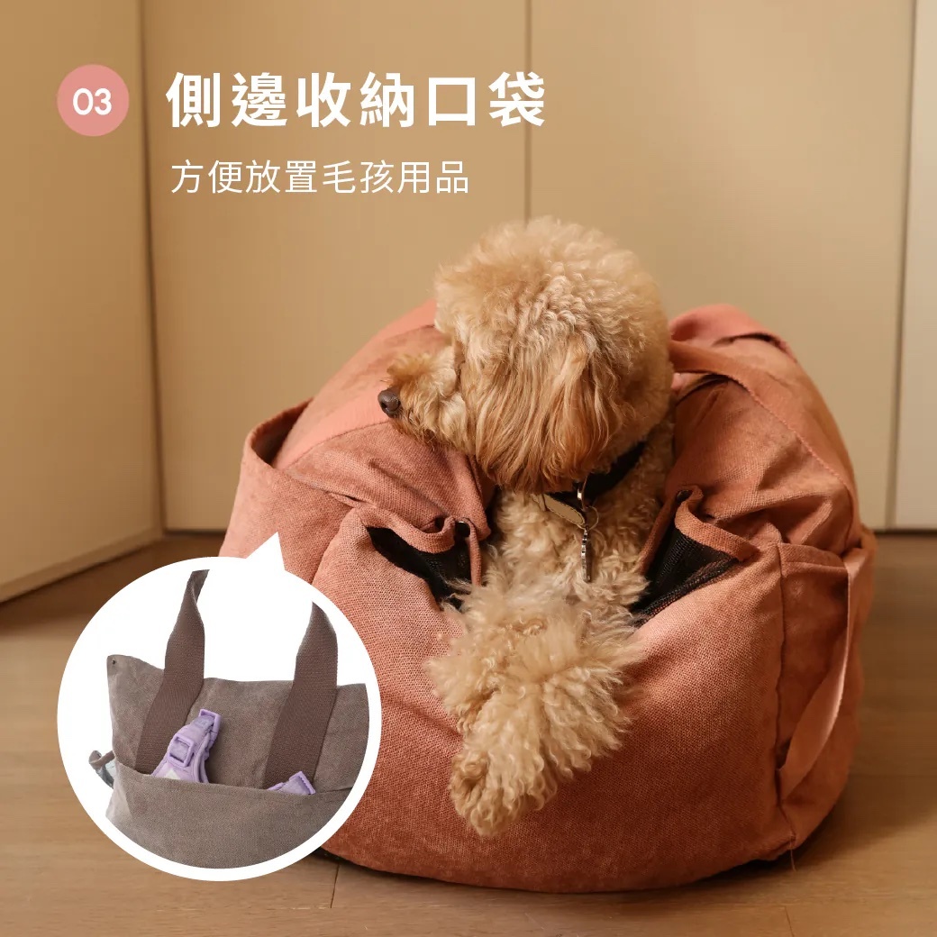 - 側口袋方便放置毛孩用品