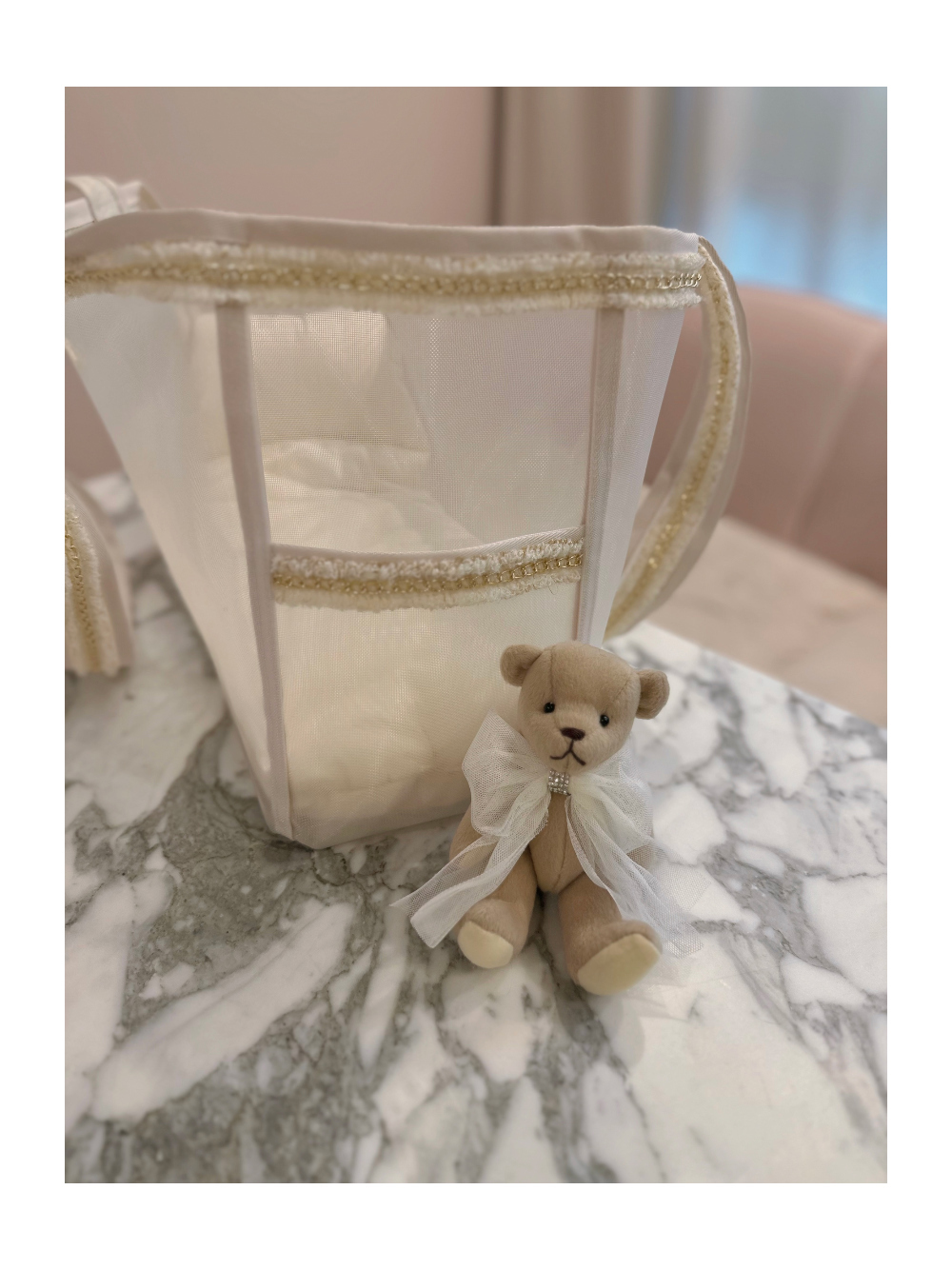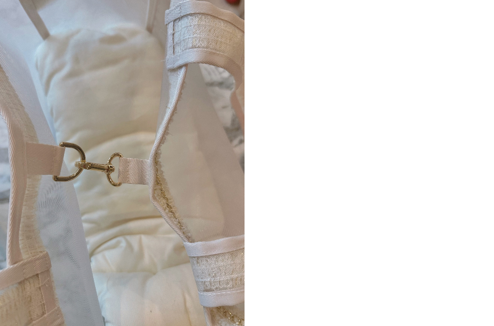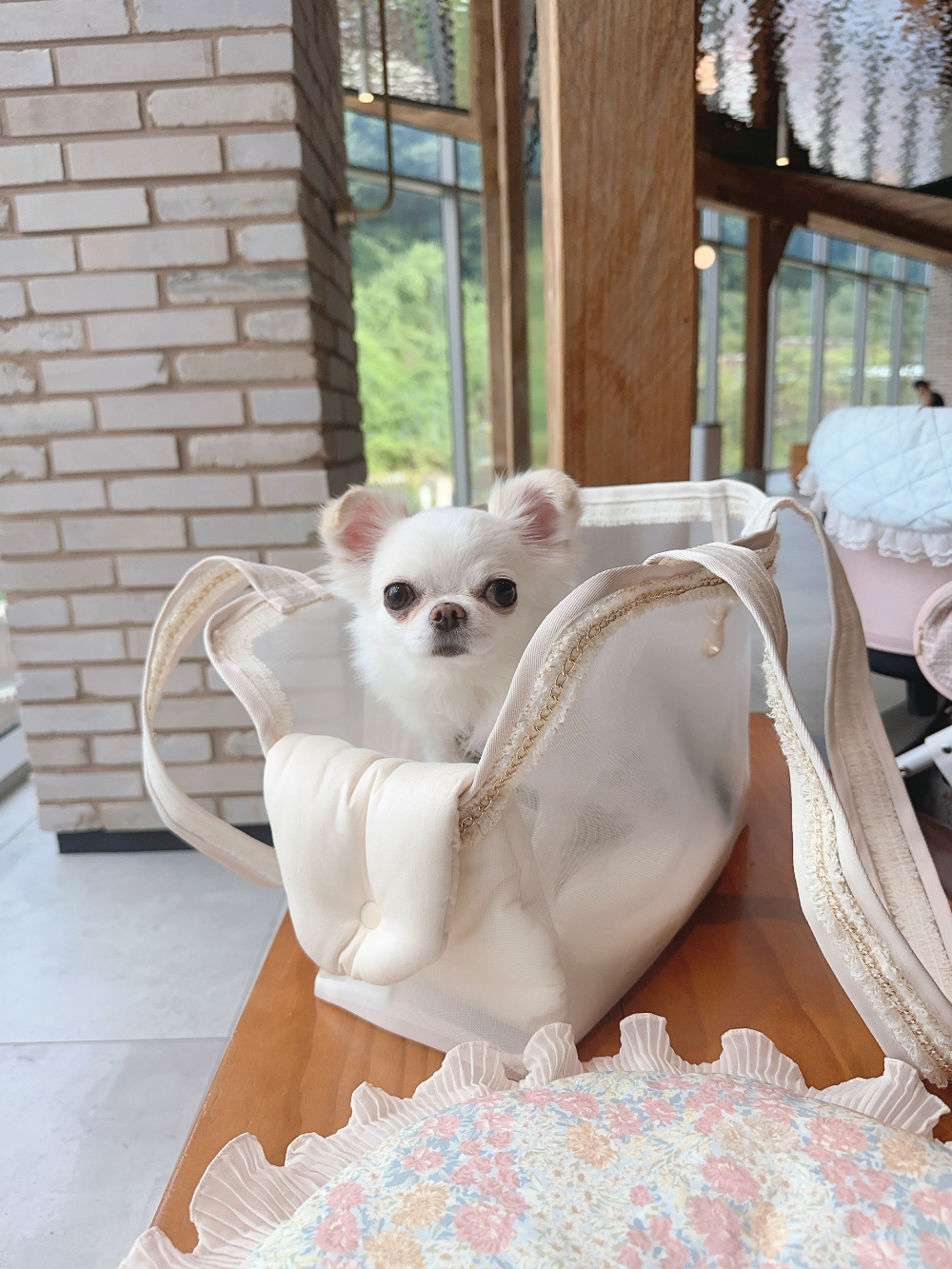 Raffine Mong擅長的透紗提袋新款登場!小香風毛呢滾邊的素雅高級感包包,兩色都好看!輕量透氣不悶熱,很適合Tea Cup狗狗使用!