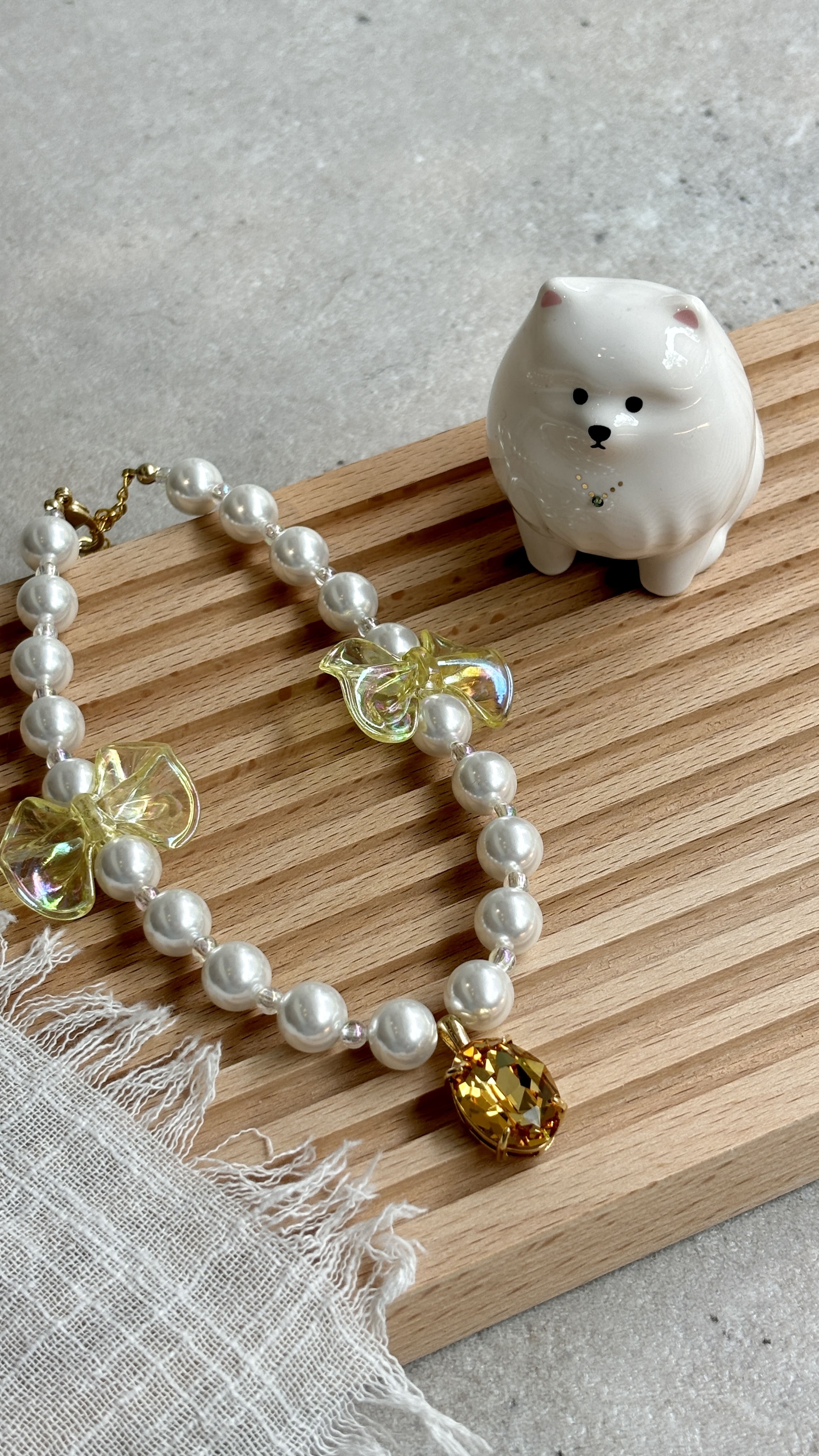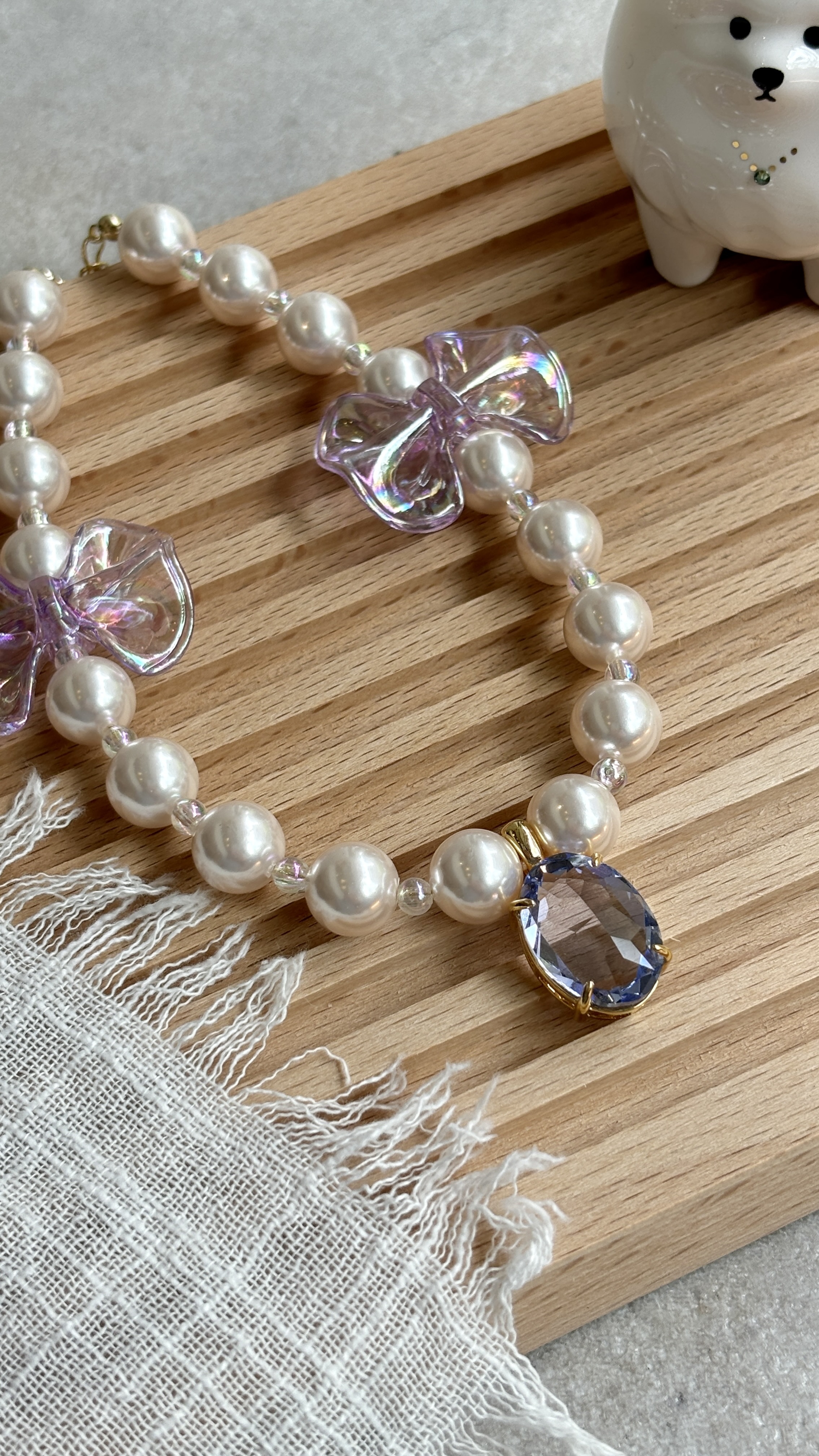 Salon de Peony 最新款式,採用日本貴和製作所水晶,推出7色蝴蝶結 x 彩晶水鑽系列項鍊,限量預購中!