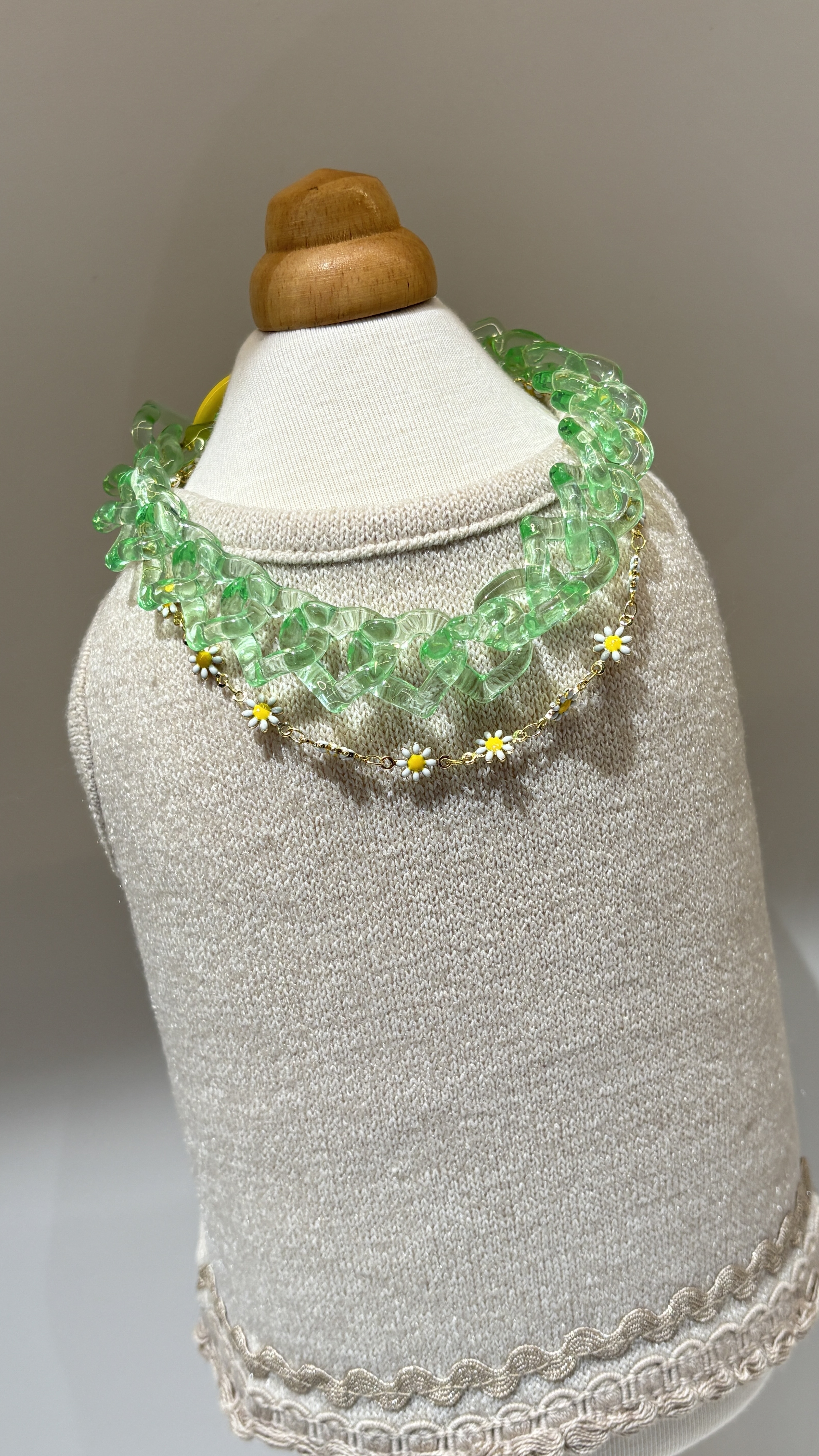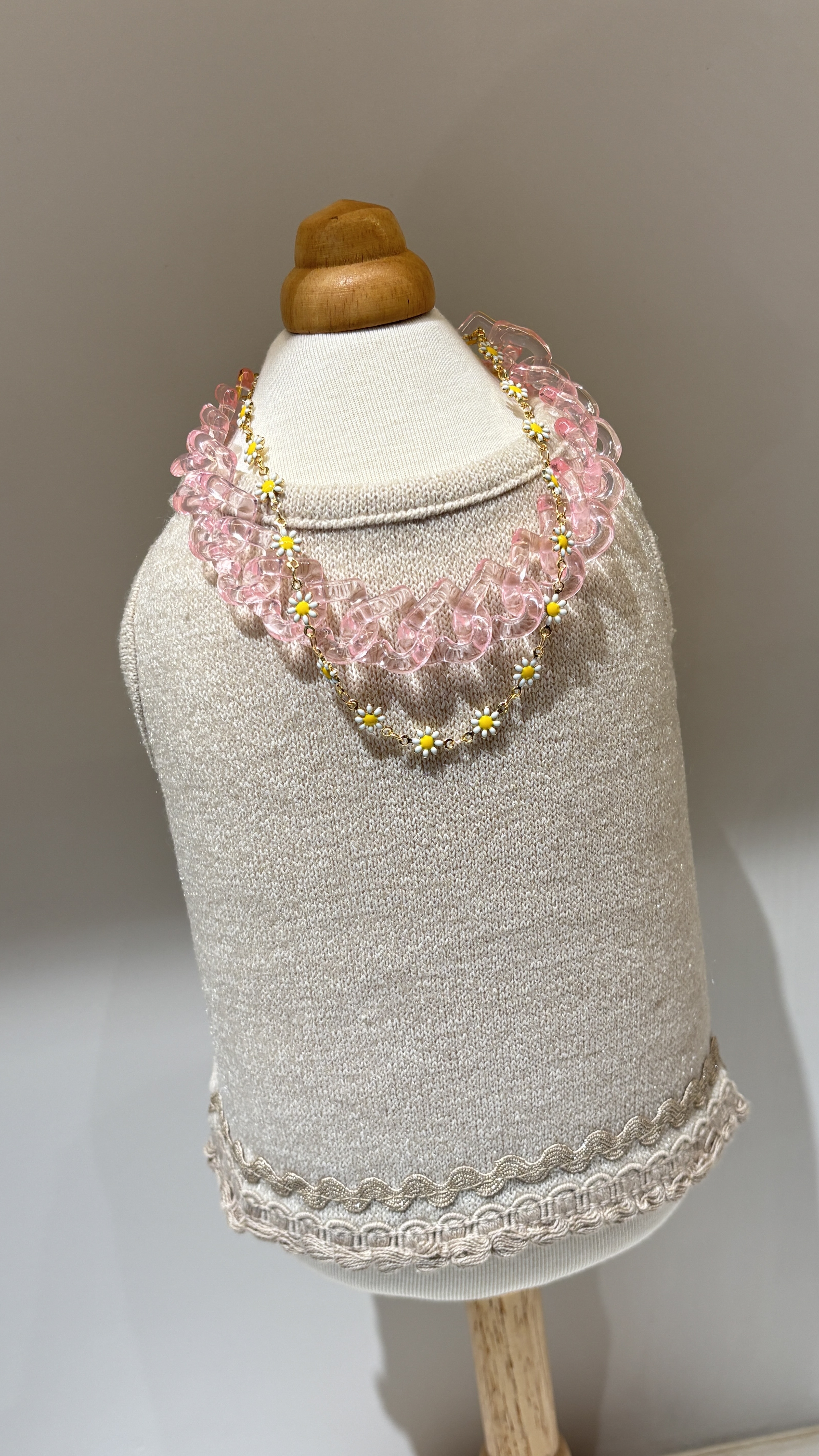 清新的綠色與粉色的愛心鎖鍊,使用的是日本輕量壓克力材質,加上小雛菊的細鍊雙鍊設計款。