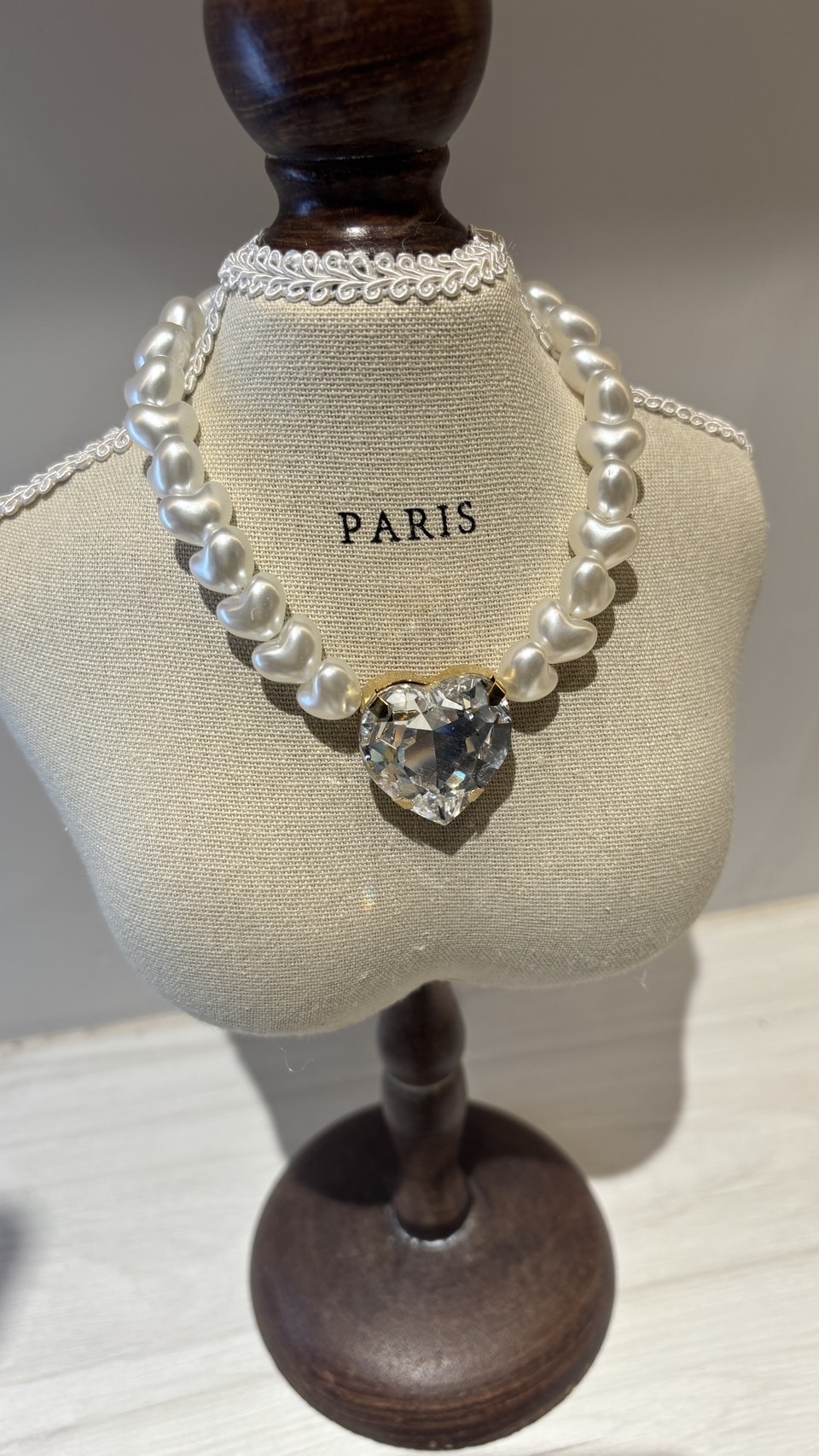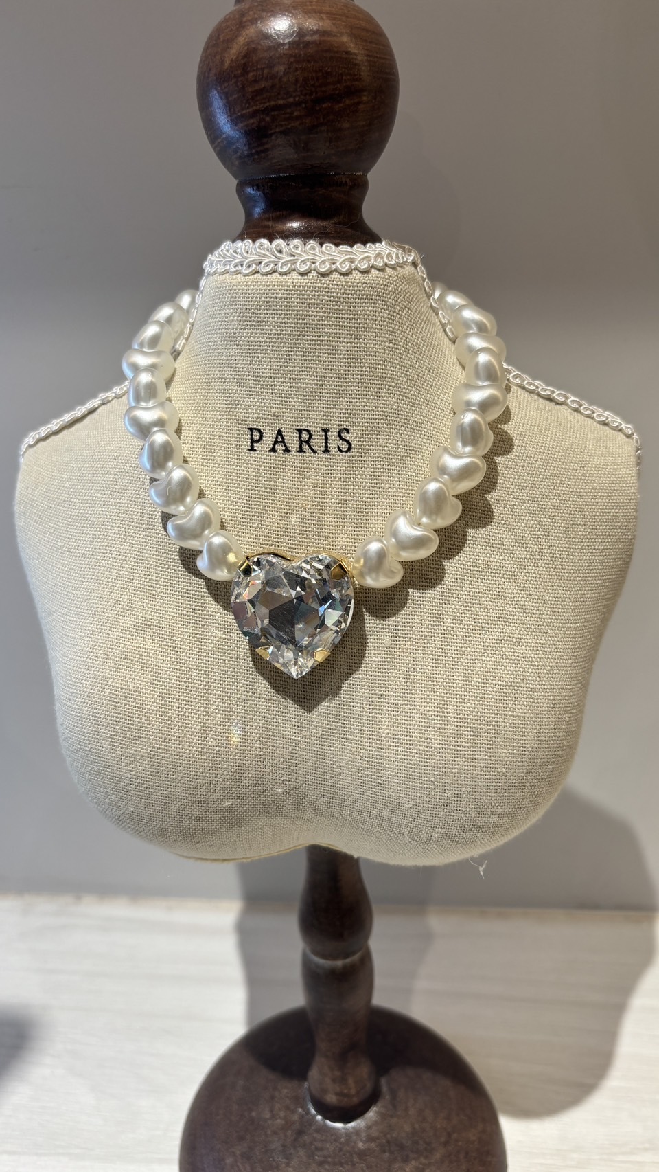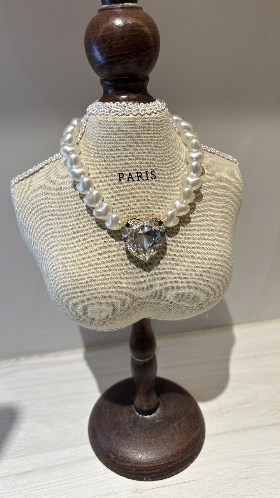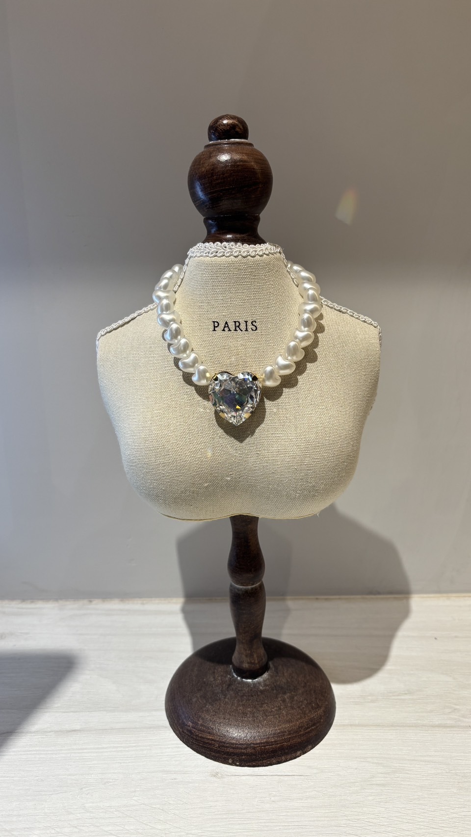 由愛心型的輕量珍珠組合+限量的大型愛心水晶打造,奢華感十足的項鍊。