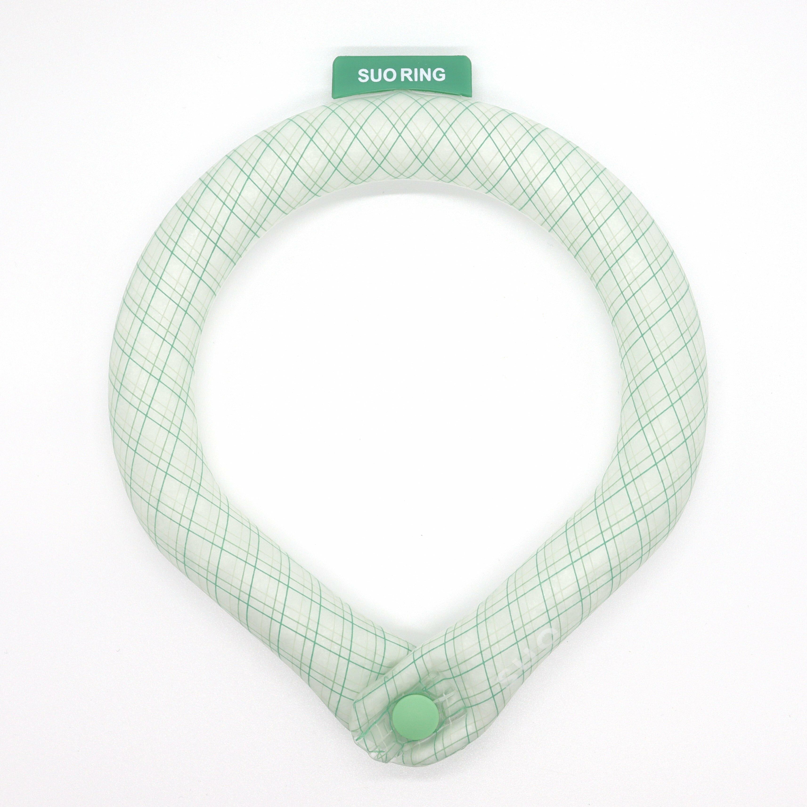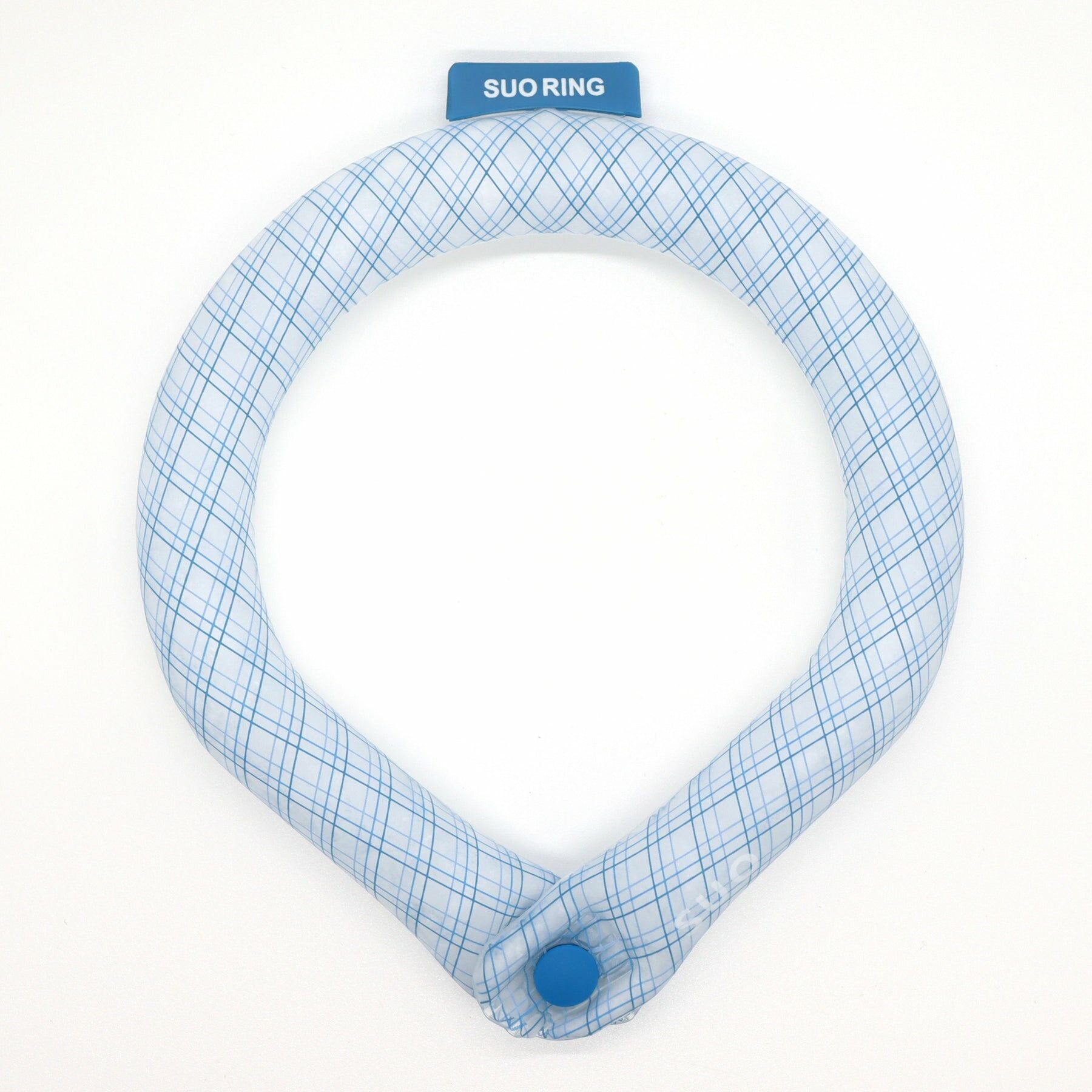 SUO RING 28°ICE在使用前請以冷水沖洗或浸泡,待本體凝固後即可使用。藉由PCM的吸熱與散熱性,配戴於頸部,能有效的降低體感溫度,預防中暑。本商品建議老犬、幼犬或一般居家輕量運動使用。本體會因環境溫度上升超過28度而漸漸溶解為液態,可以再行沖泡冷水或是靜置冷氣房,待本體降溫至28度以下凝固即可,可以多次重複使用。