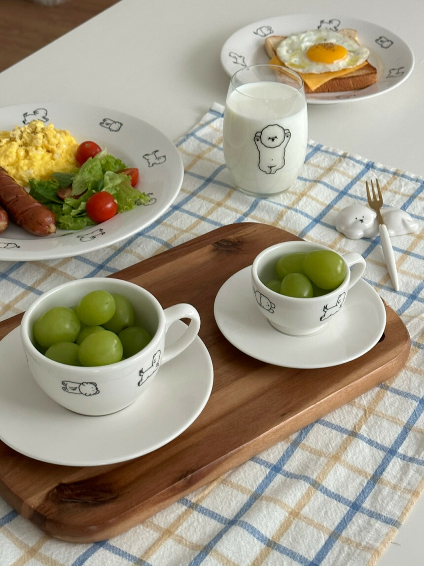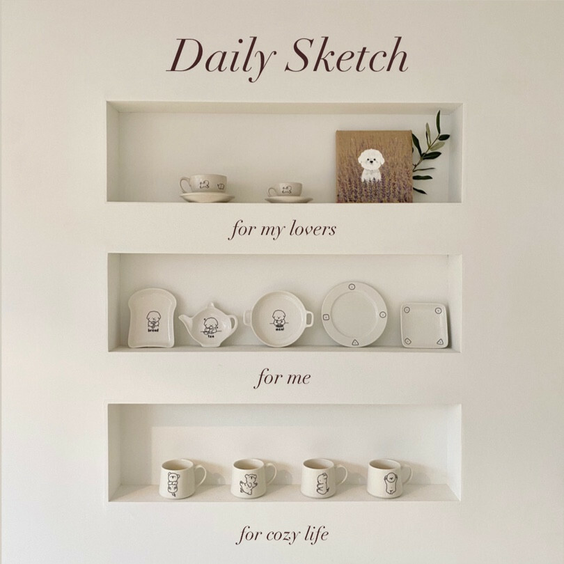 每天都要見到可愛比熊!Daily Sketch系列,以比熊『年糕』為發想,設計出一系列狗狗日常可愛姿勢的餐具單品,