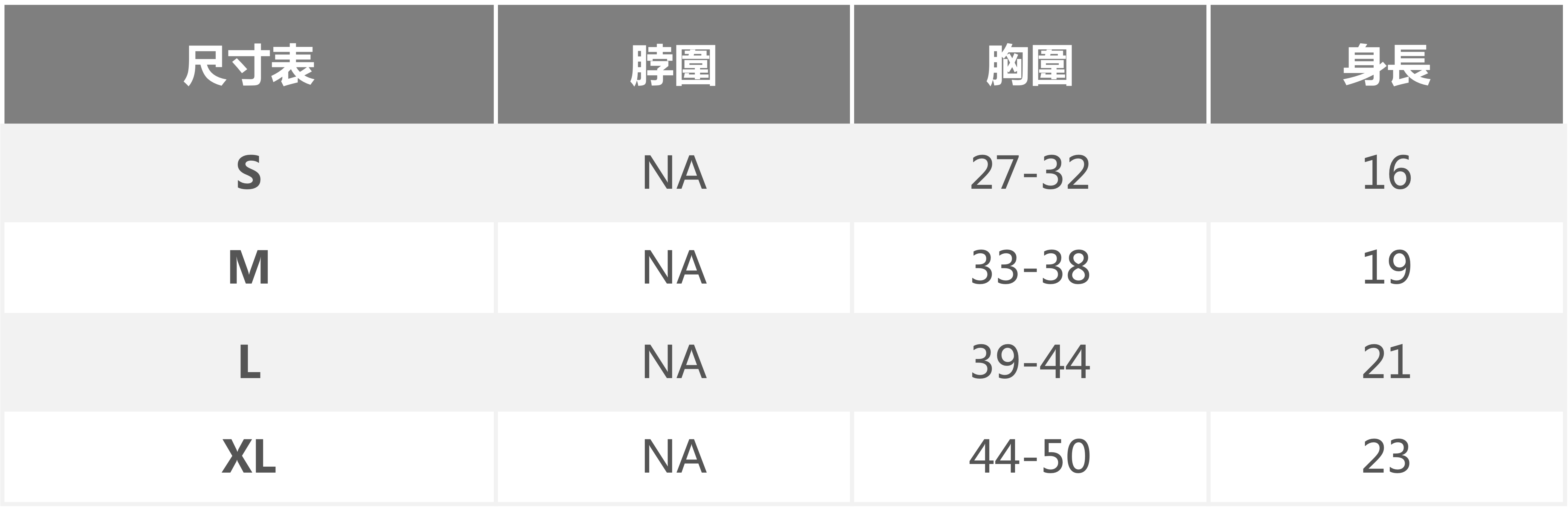 2. 尺寸選擇請以胸圍為主,衣長穿著起來的長度會因版型與狗狗身材而有不同。