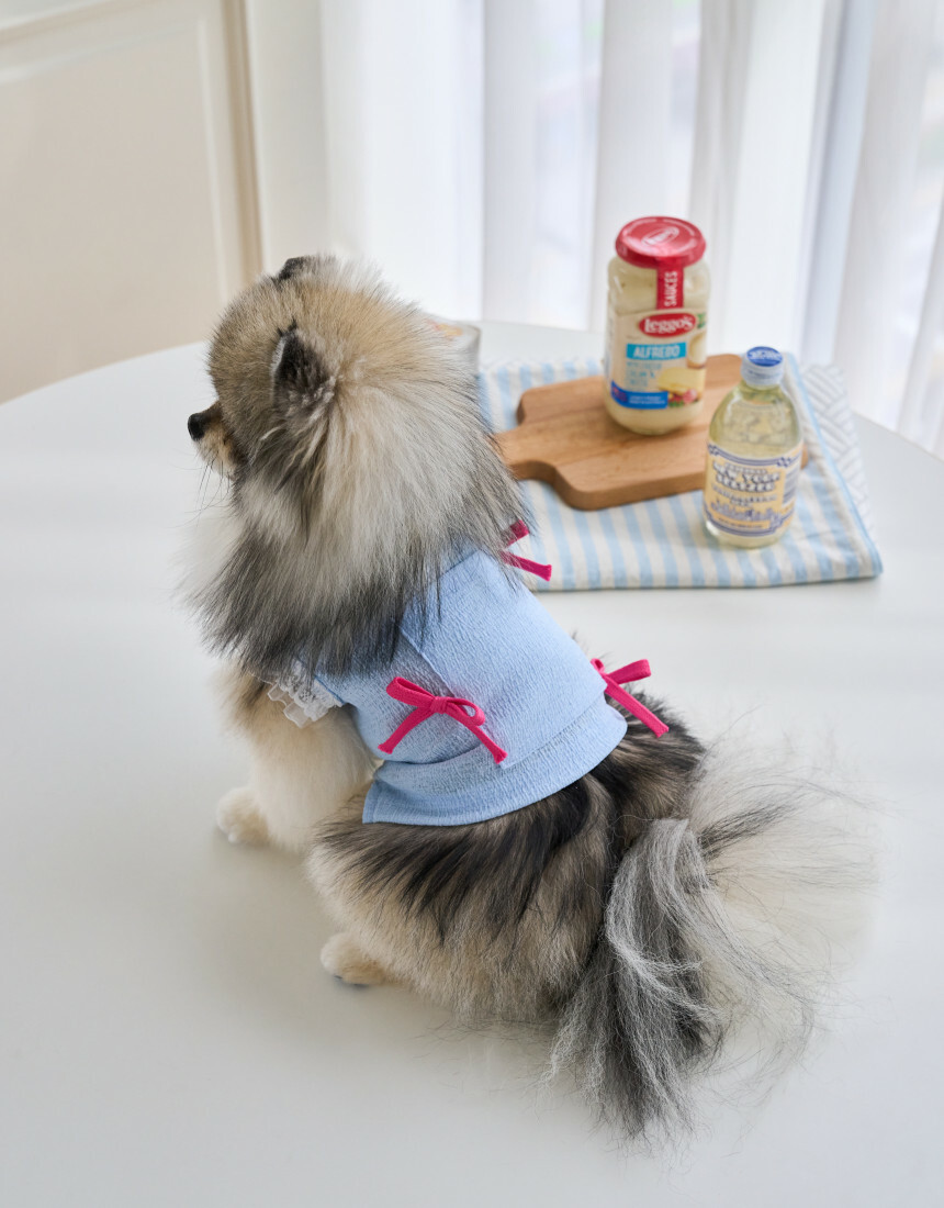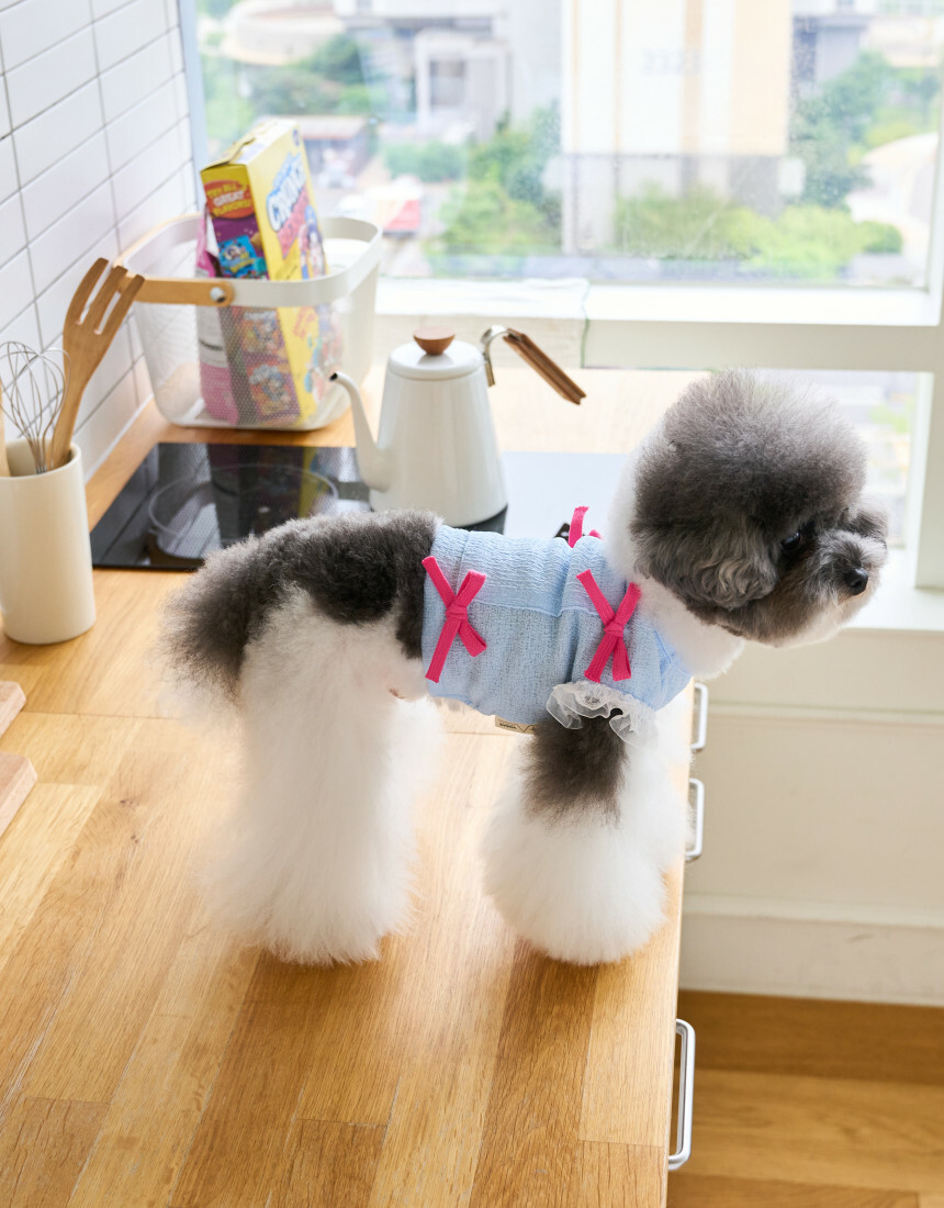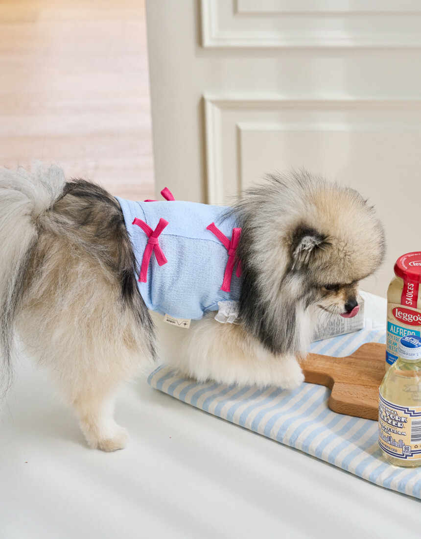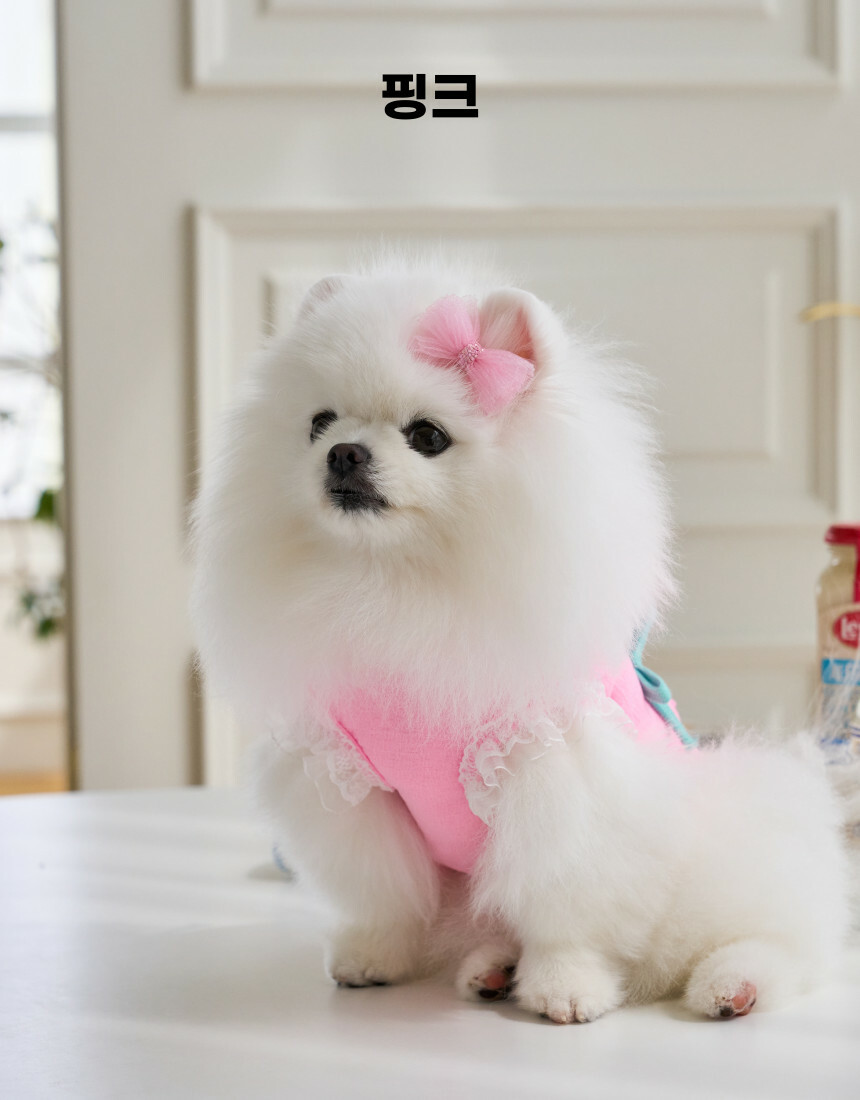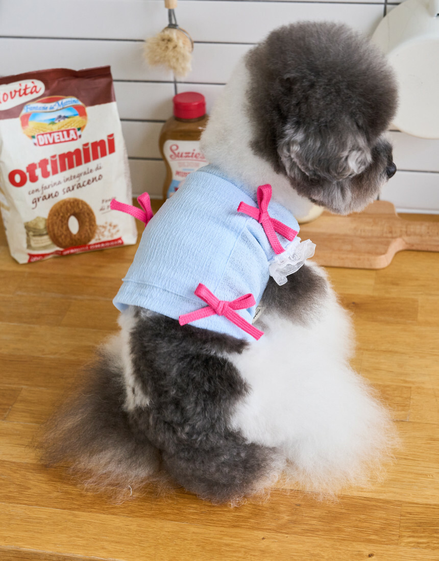 亮麗的多巴胺色調:粉紅/黃/藍色,加上撞色的可愛小蝴蝶結裝飾,無袖與蕾絲滾邊,簡單又細節滿滿的實用款~