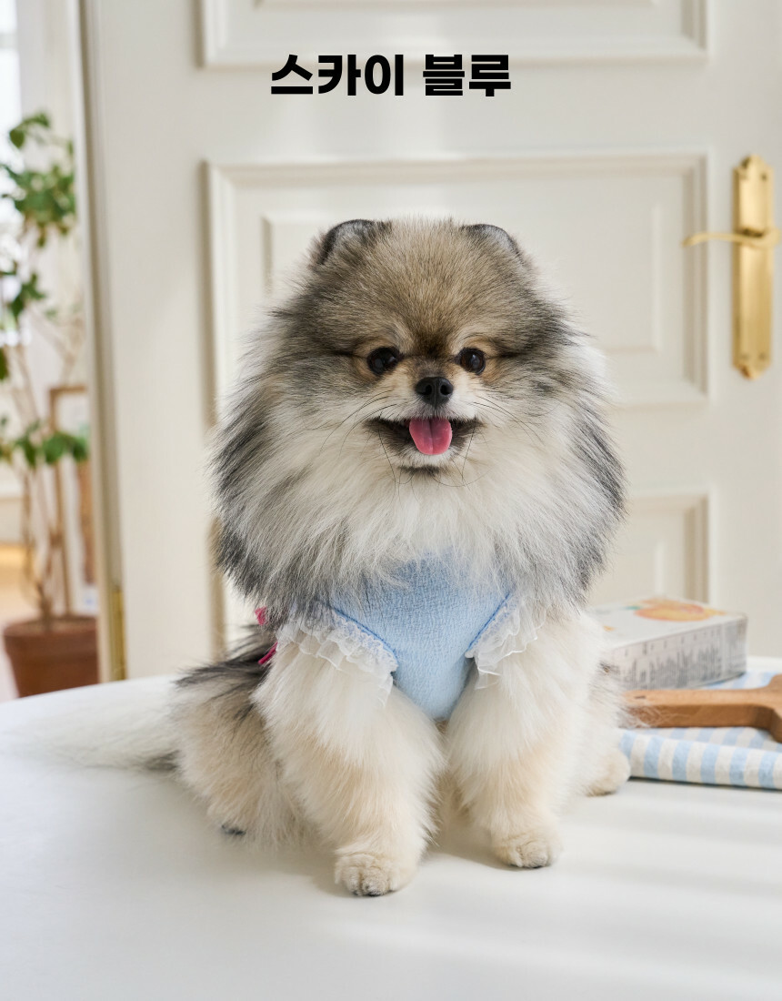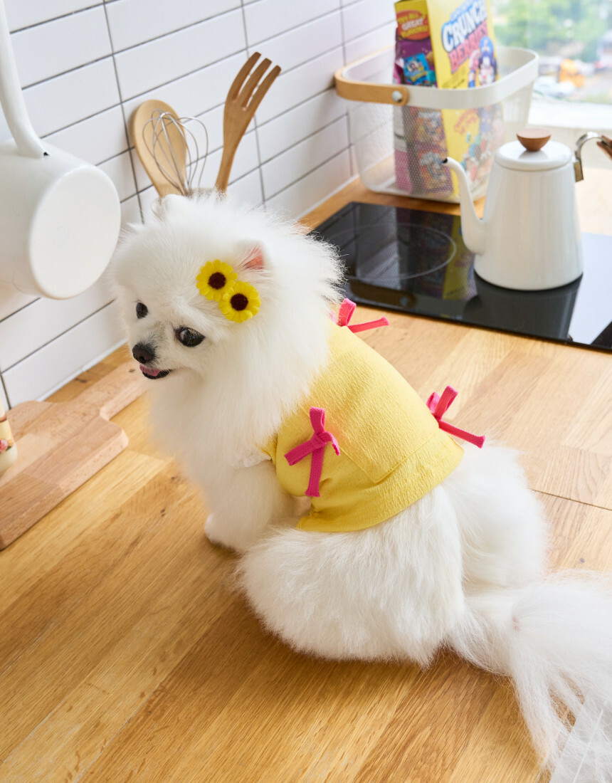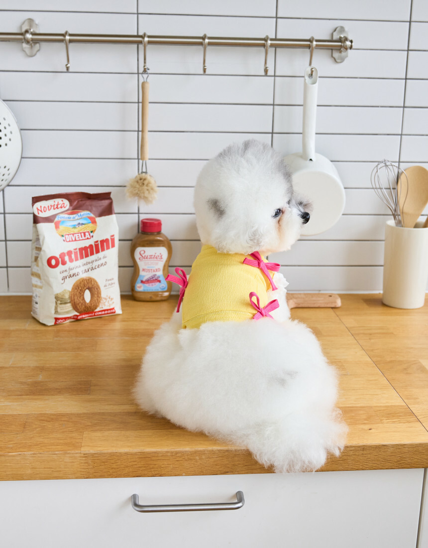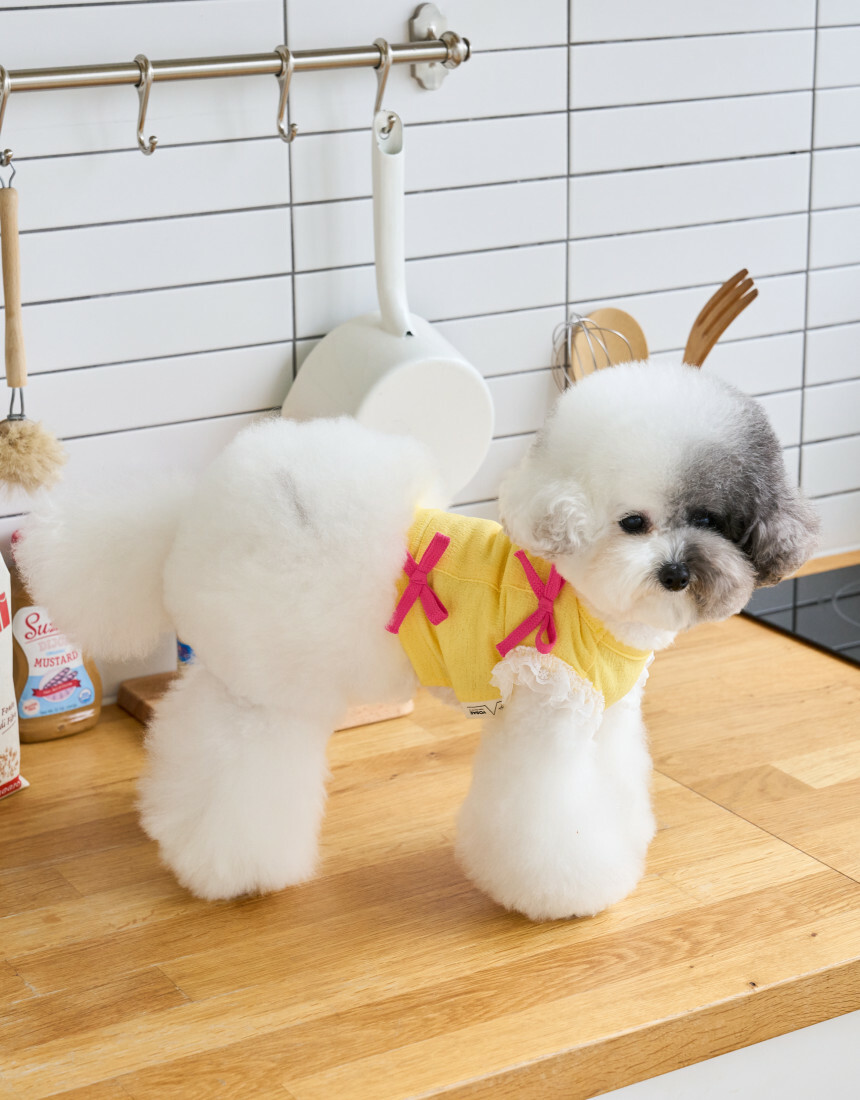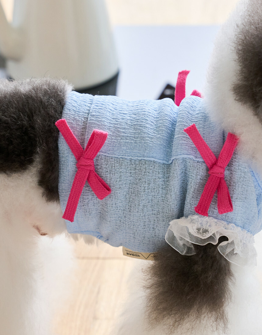 亮麗的多巴胺色調:粉紅/黃/藍色,加上撞色的可愛小蝴蝶結裝飾,無袖與蕾絲滾邊,簡單又細節滿滿的實用款~