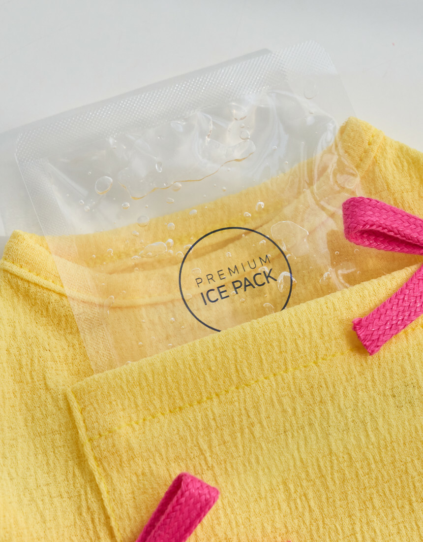 背上的口袋設計,能放置專屬的訂製冷凝膠,夏日可以放在冰箱冷藏或冷凍後使用,出門也不怕熱了,
