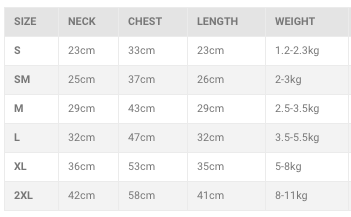 尺寸表: