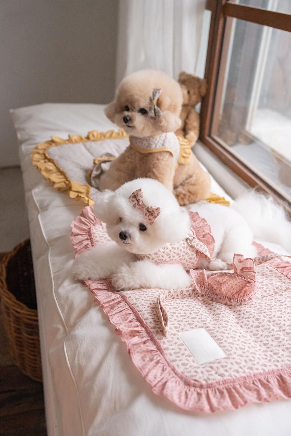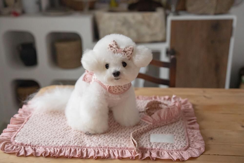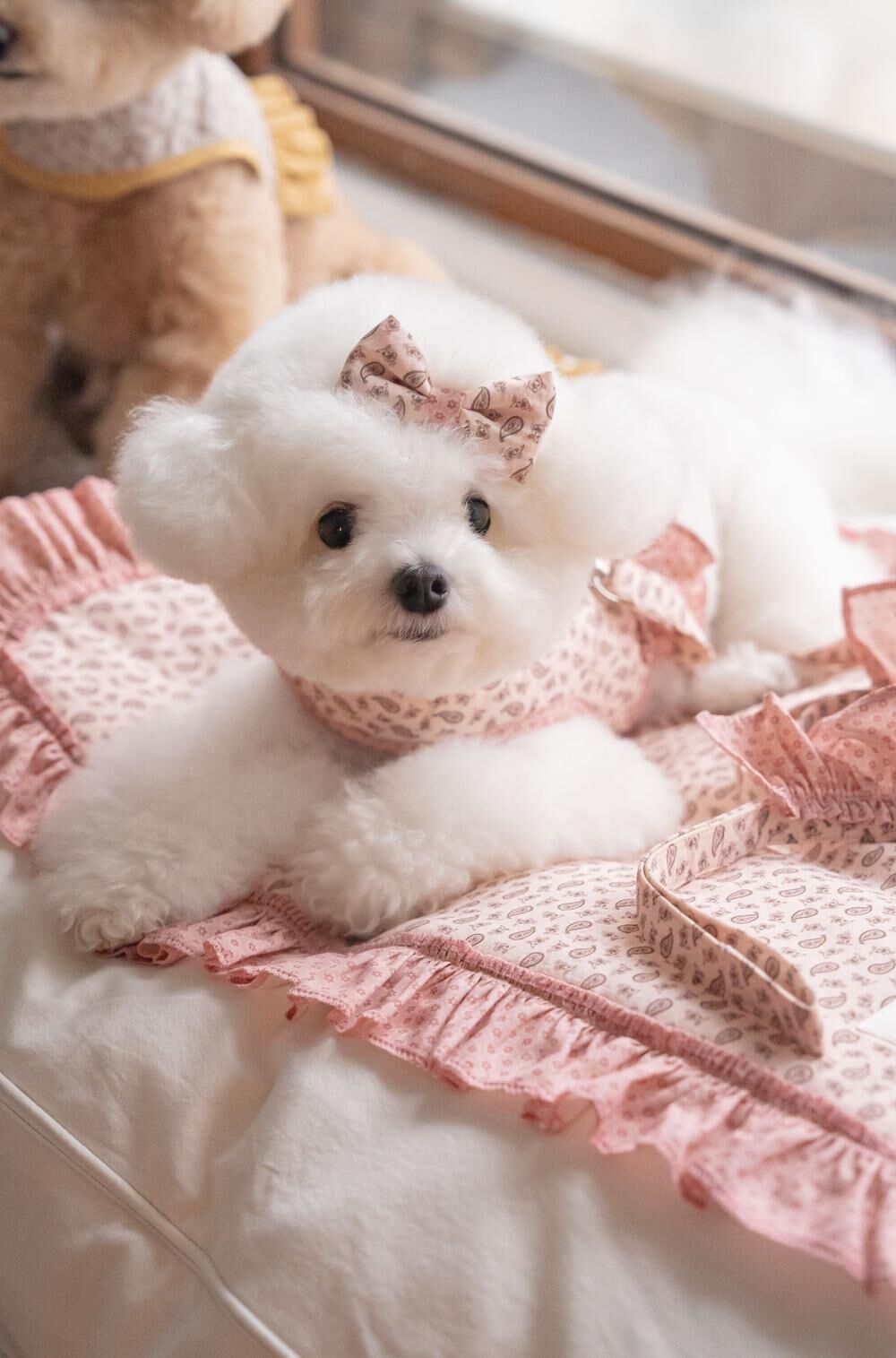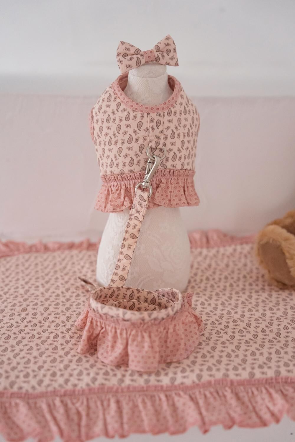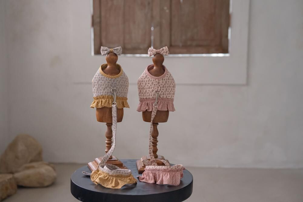 Flâneur 經典民族風靈感圖樣,以 Rouge & Mustard 色調展現優雅秋日時尚氛圍。季節感圓點圖案 與 雙層蕾絲細節,俏皮與精緻兼具,可與胸背帶、牽繩完美搭配,打造完整一致的造型。