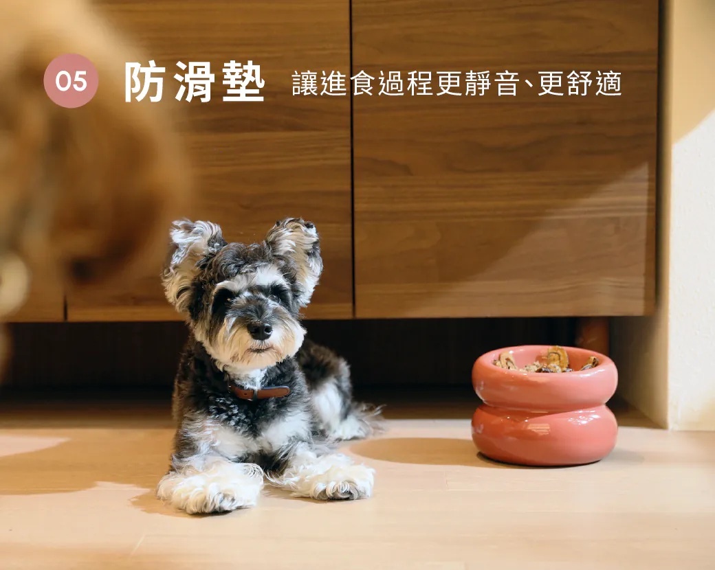 搭配止滑墊,讓毛孩擁有更加安全享用靜音吃食體驗